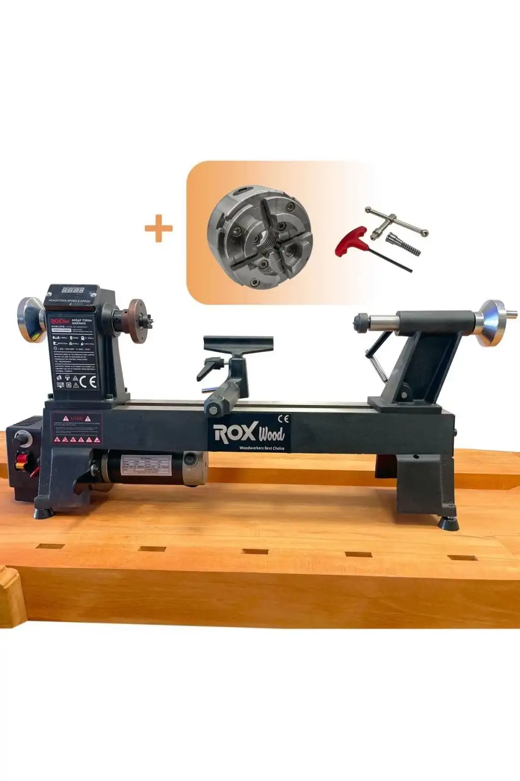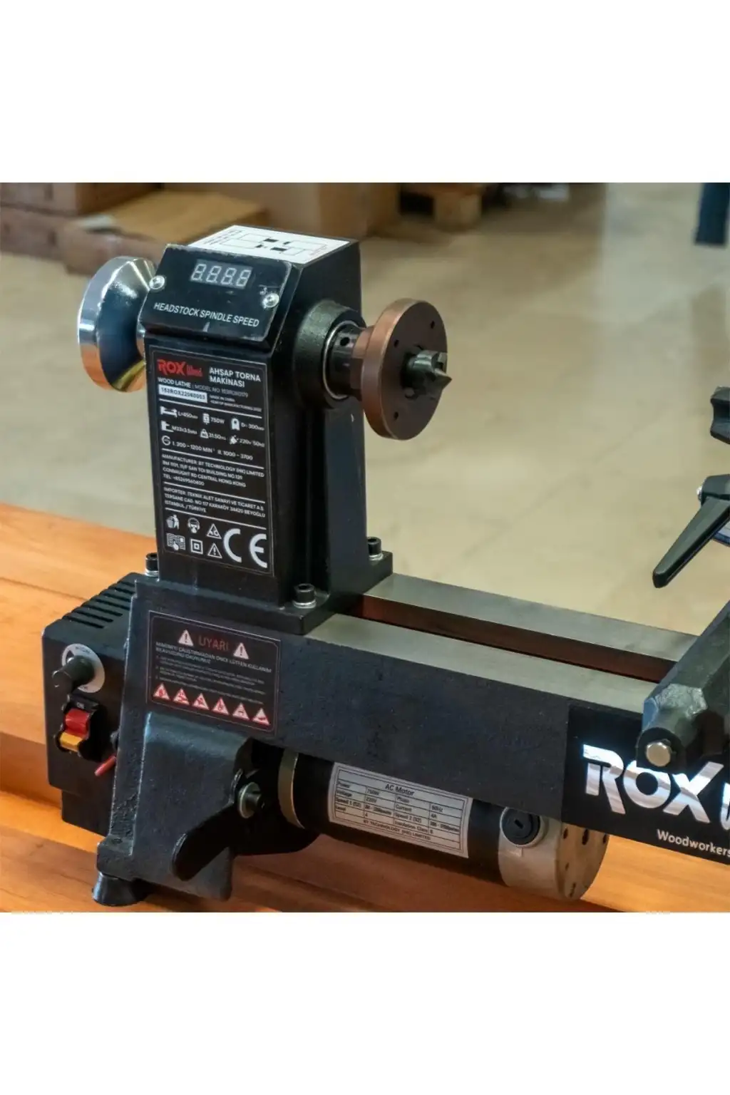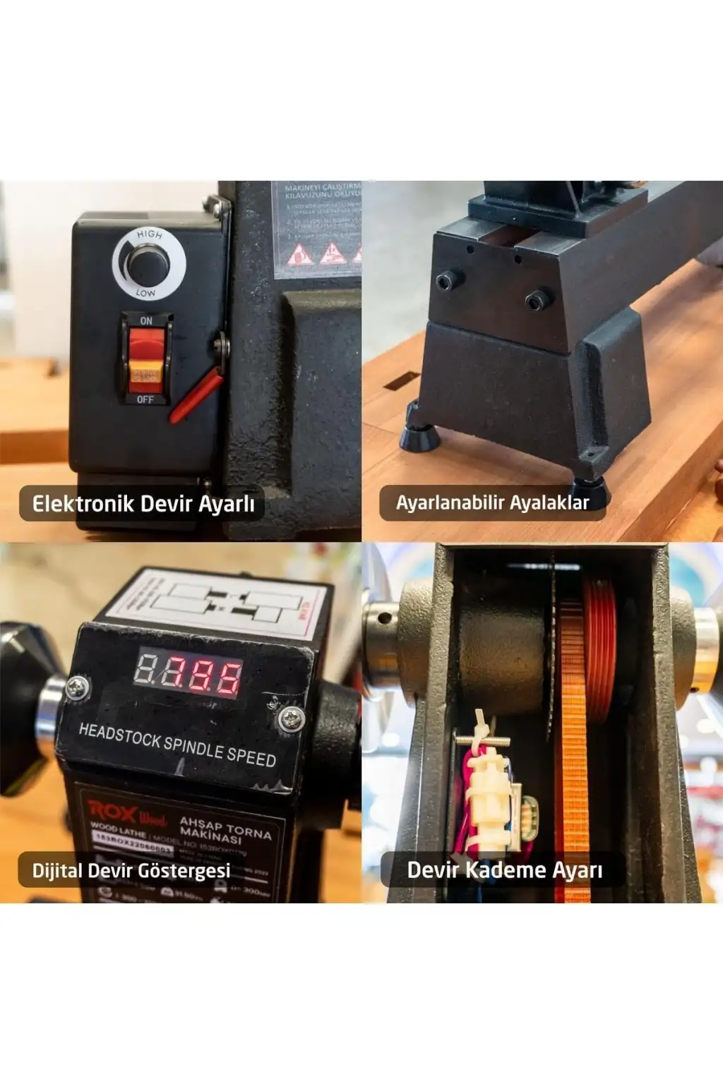 Rox Wood 0179 Devir Ayarlı Ahşap Torna Makinası 750 Watt (Dört Çeneli Ahşap Torna Aynalı) Çaışma tezgahlarında çalışabileceğiniz ahşap torna makinesidir. Ürün ile birlikte dört çeneli ahşap torna aynasıda gelmektedir, Güçlü motor maksimum güvenlik ve düşük gürültü oluşumu sunar, Hız ayarlayıcısını saat yönde çevirin, değişken hızı kademe ayarı ile 300 ila 3700 devir/dakika aralığında serbestçe ayarlayabilirsiniz. Yüksek dönme hassasiyeti. İş parçalarının mesafesini ayarlamak için punta hareket ettirin, Dökme demirden yapılmış gövdesi, uzun ömürlülük, yüksek dayanıklılık ve sorunsuz çalışma sağlar. Dökme demir konstrüksiyon, titreşimleri azaltır, Laboratuvarlarda, atölyelerde, mühendislik eğitiminde vb. çok sayıda proje için ideal bir seçimdir, Elektronik devir ayarlı, Teknik Özellikleri Motor Gücü: 750 Watt Voltaj: 220 Volt 50Hz 1. Kademe Devir Aralığı: 300-1200 Devir/dak 2. Kademe Devir Aralığı: 1000-3700 Devir/dak (Kademe değişimi kasyank kayışın yer değiştirimesi ile yapılmaktadır.) Ürün işleme uzunluğu: 450 mm Ürün işleme çapı: 300 mm Punta hareket aralığı: 55 mm Ayna bağlantı ölçüsü: M33x3.5 mm Takım tutucu uzunluğu: 150 mm Ana malzeme: Dökme demir Ürün ölçüleri: 20x83x42 cm (En x Boy x Yükseklik) Ürün ağırlığı: 31.5 Kg Ambalaj ağırlığı: 37 Kg Ambalaj boyutu: 65x82x29 cm Teslimat içeriği 1 Adet - Ahşap Torna Makinası 1 Adet - Dört Çeneli Ahşap Torna Aynası 1 Adet - Kullanma kılavuzu