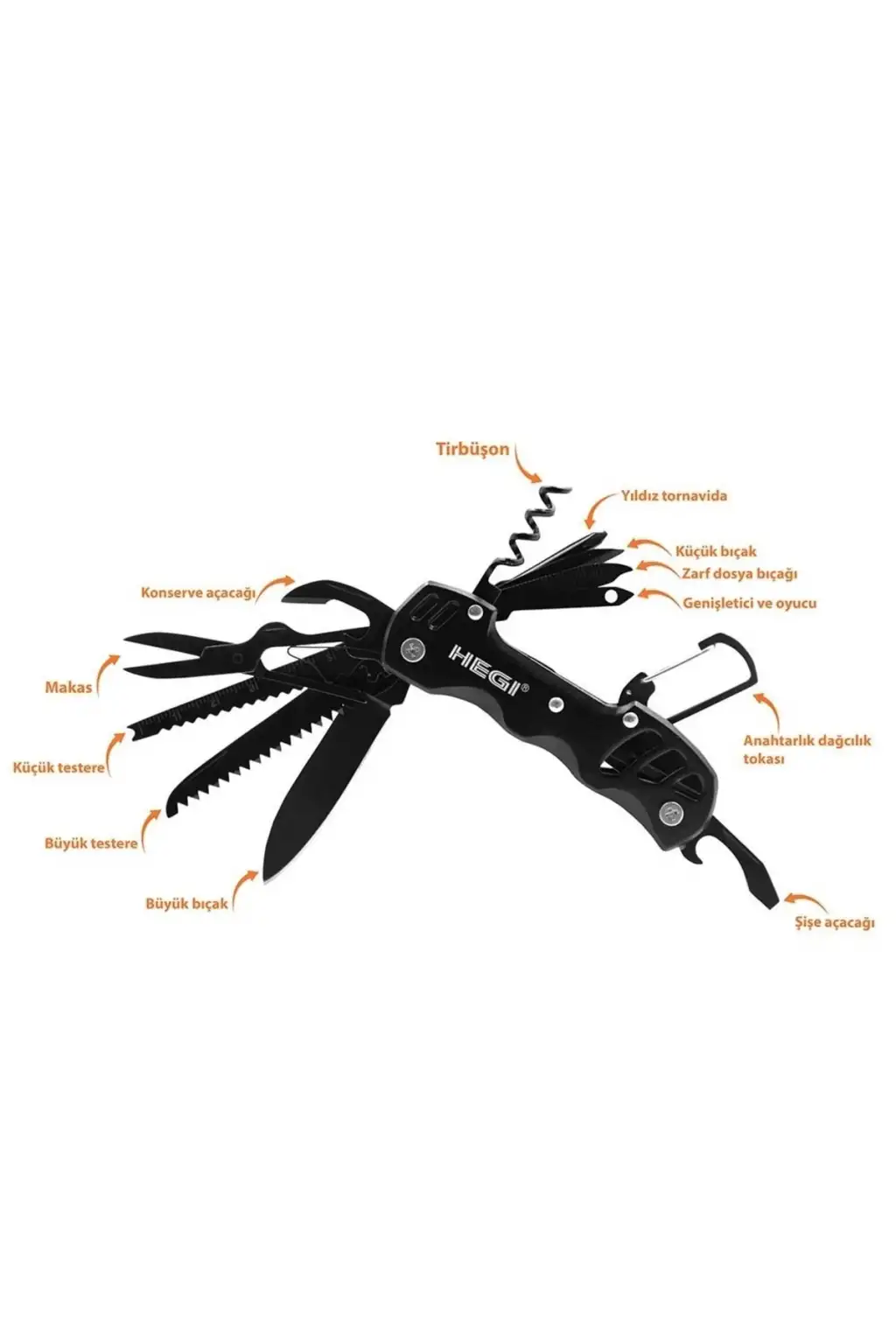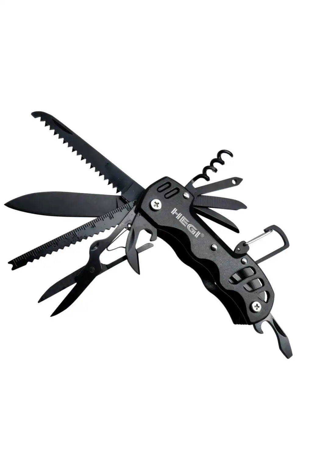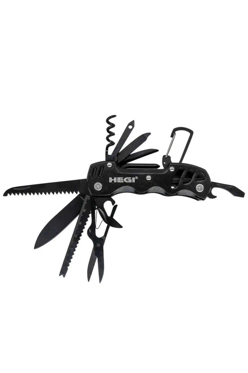 Hegi 12 Fonksiyonlu Paslanmaz İsviçre Çakısı - AISI316 - Siyah Outdoor Kamp Cep Çakısı Kampçılıkta veya acil durumlarda kullanılmak amacı ile tasarlanmıştır. Gündelik hayatta anahtarlık olarak kullanılabilir, fonksiyonları paslanmaz çeliktir. Seyahat, kamp, yürüyüş, tırmanma v.b. durumlarda kullanmak için çok amaçlı çakı. Uzunluk: 90 mm Genişlik: 35 mm Kalınlık: 22 mm Ağırlık: 180 gr Karton kutusunda sevk edilir. Teslimat içeriği 1 Adet - Çok fonksiyonlu çakı Fonksiyonlar Büyük bıçak Şişe açacağı Yıldız tornavida Küçük bıçak Dosya bıçağı ve törpü Genişletici ve oyucu bıçak Tirbüşon Ağaç testeresi Kireç çözme bıçağı Makas Konserve açacağı Anahtarlık ve dağcılık tokası