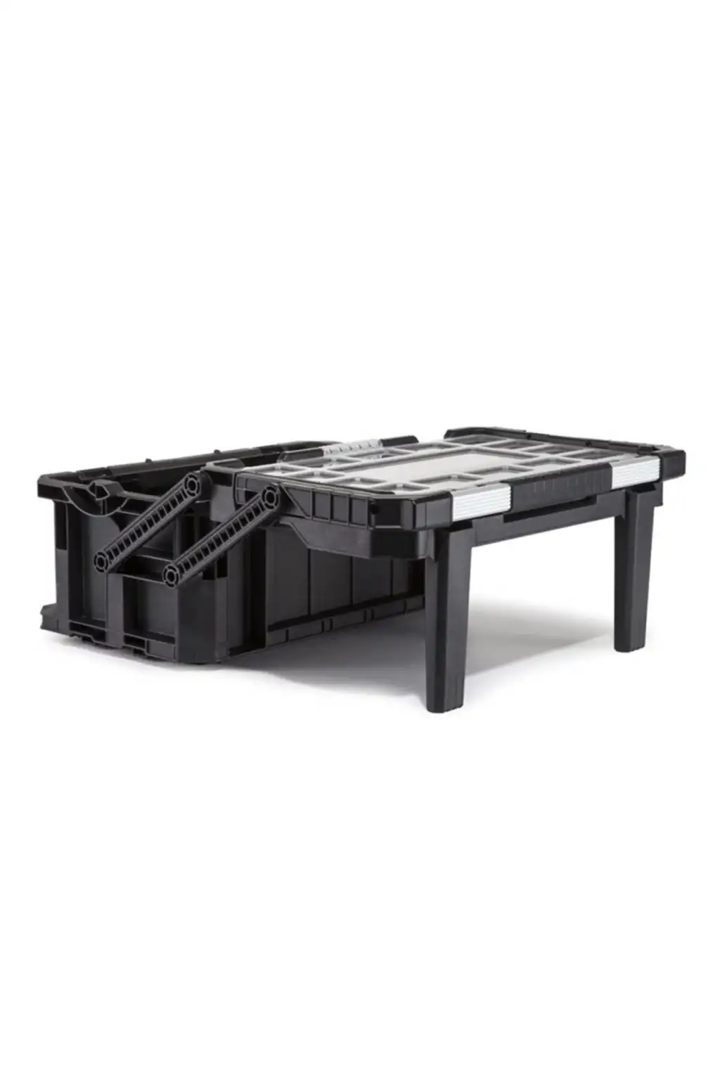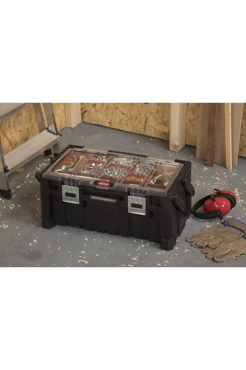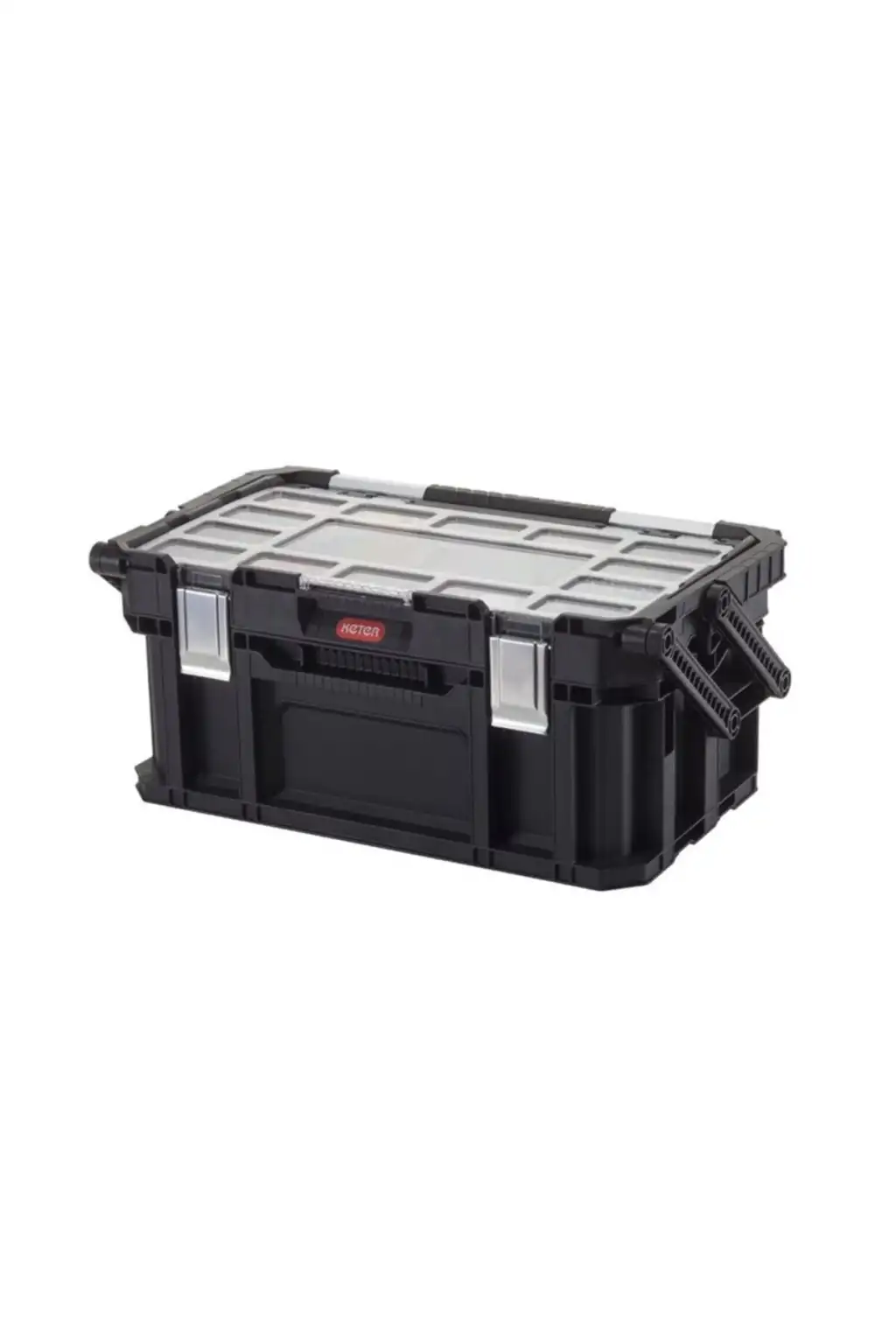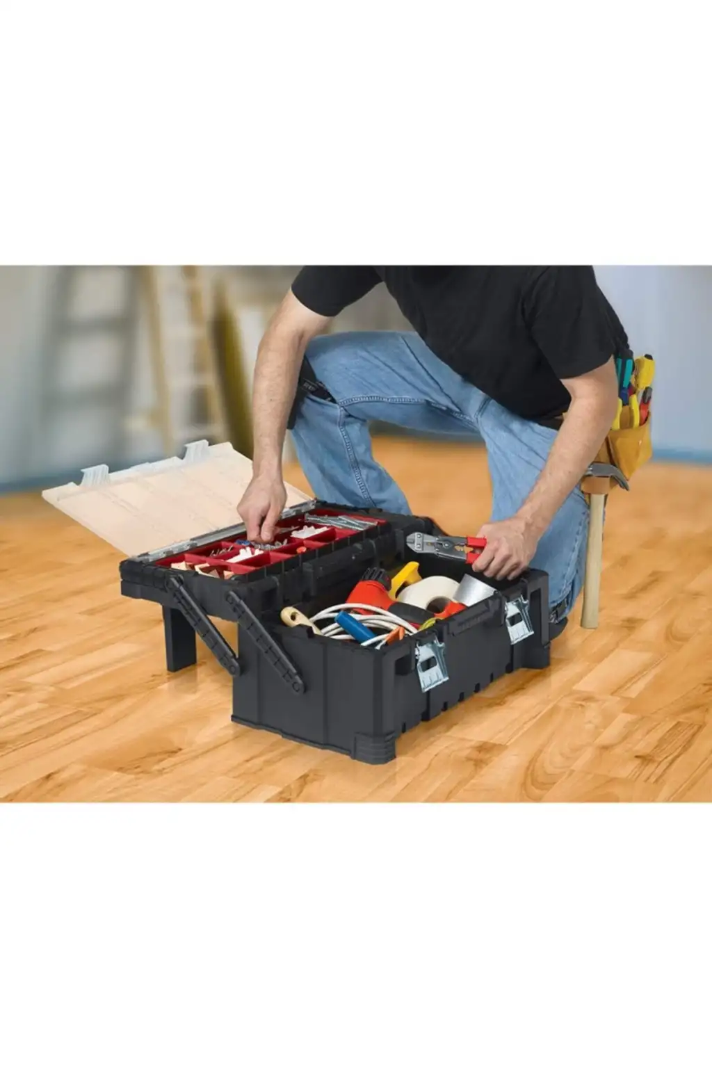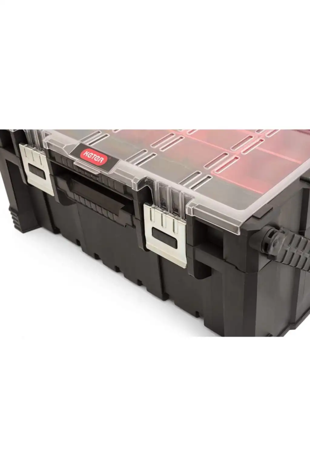 Görselde bulunan el aletleri teslimat kapsamına dahil değildir. Boyutlar:56.5x31.7x24.8 cm Bölünebilir gövde yapısı Metal kilitler Bu ürün, KETER Connect Smart Rolling Organizerli 3 Katlı Tekerlekli Takım Çantası ile uyumludur, birlikte kullanılabilir.