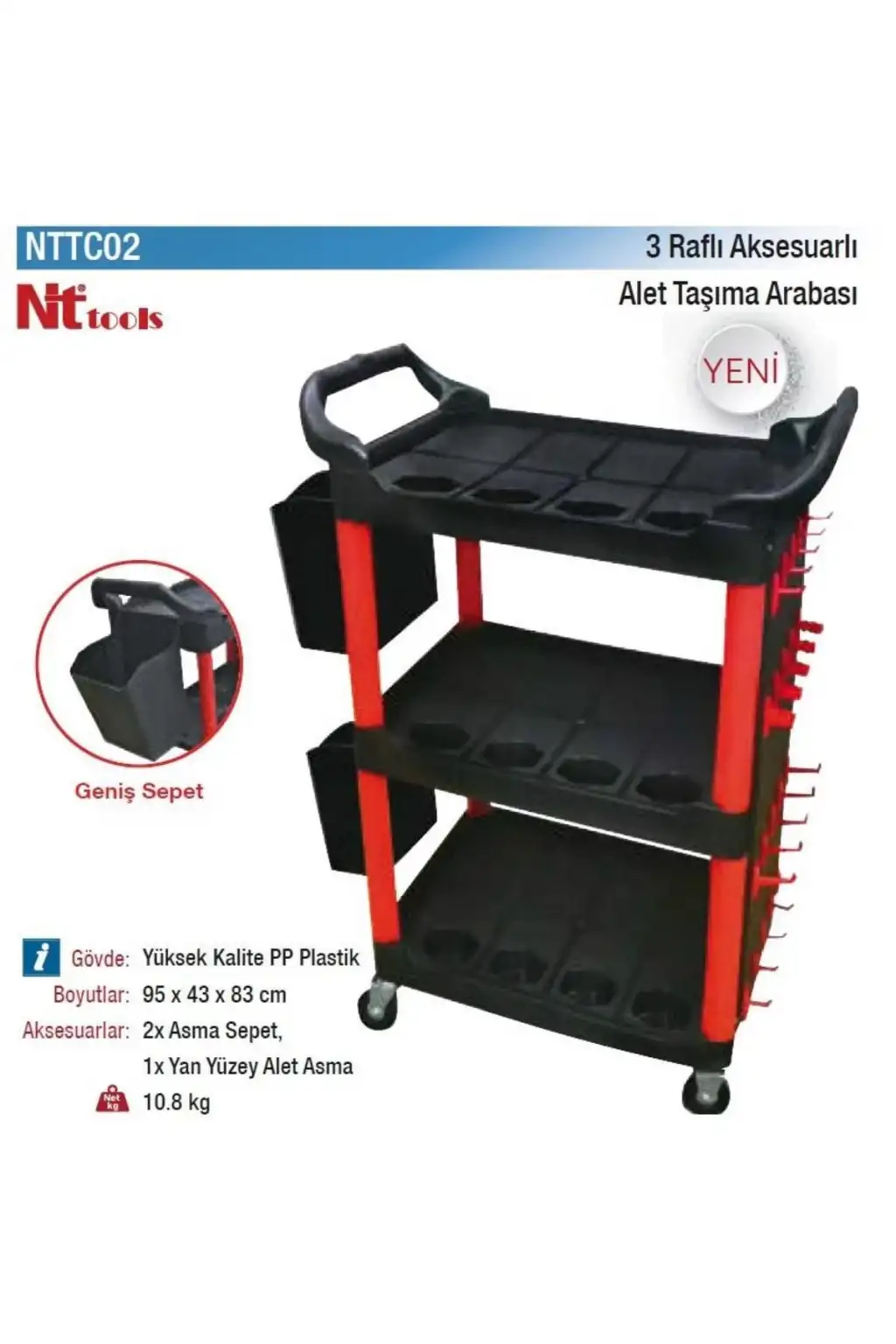3 Raflı Alet Taşıma Arabası Aksesuarlı Yüksek Kalite Pp Plastik Nttc02 95x43x83 Cm.