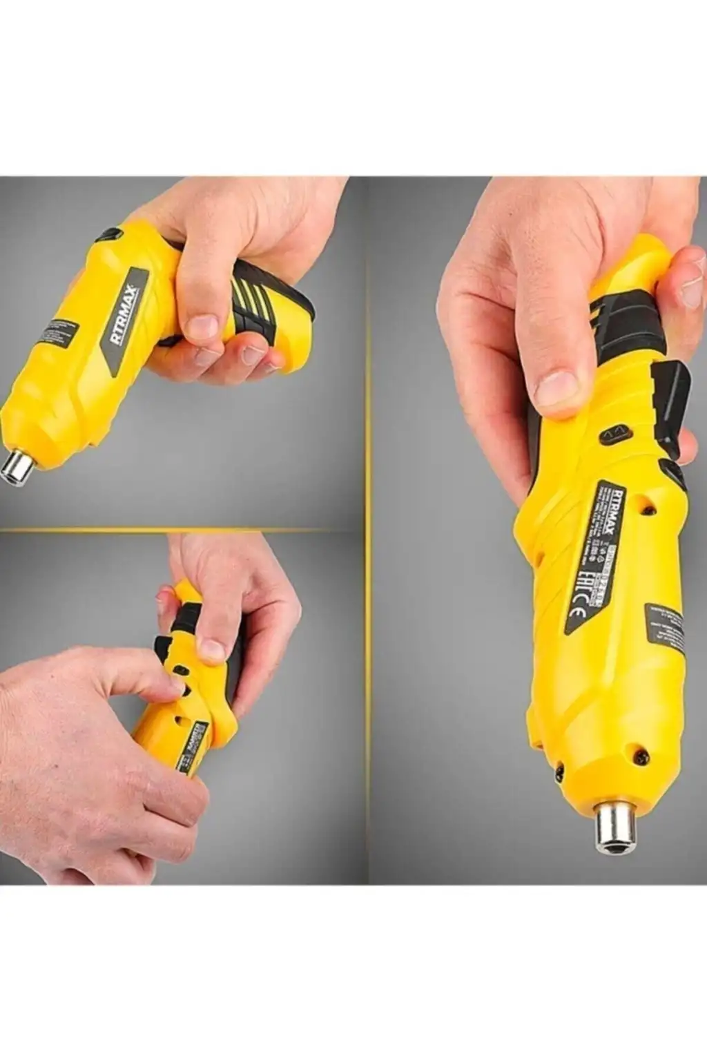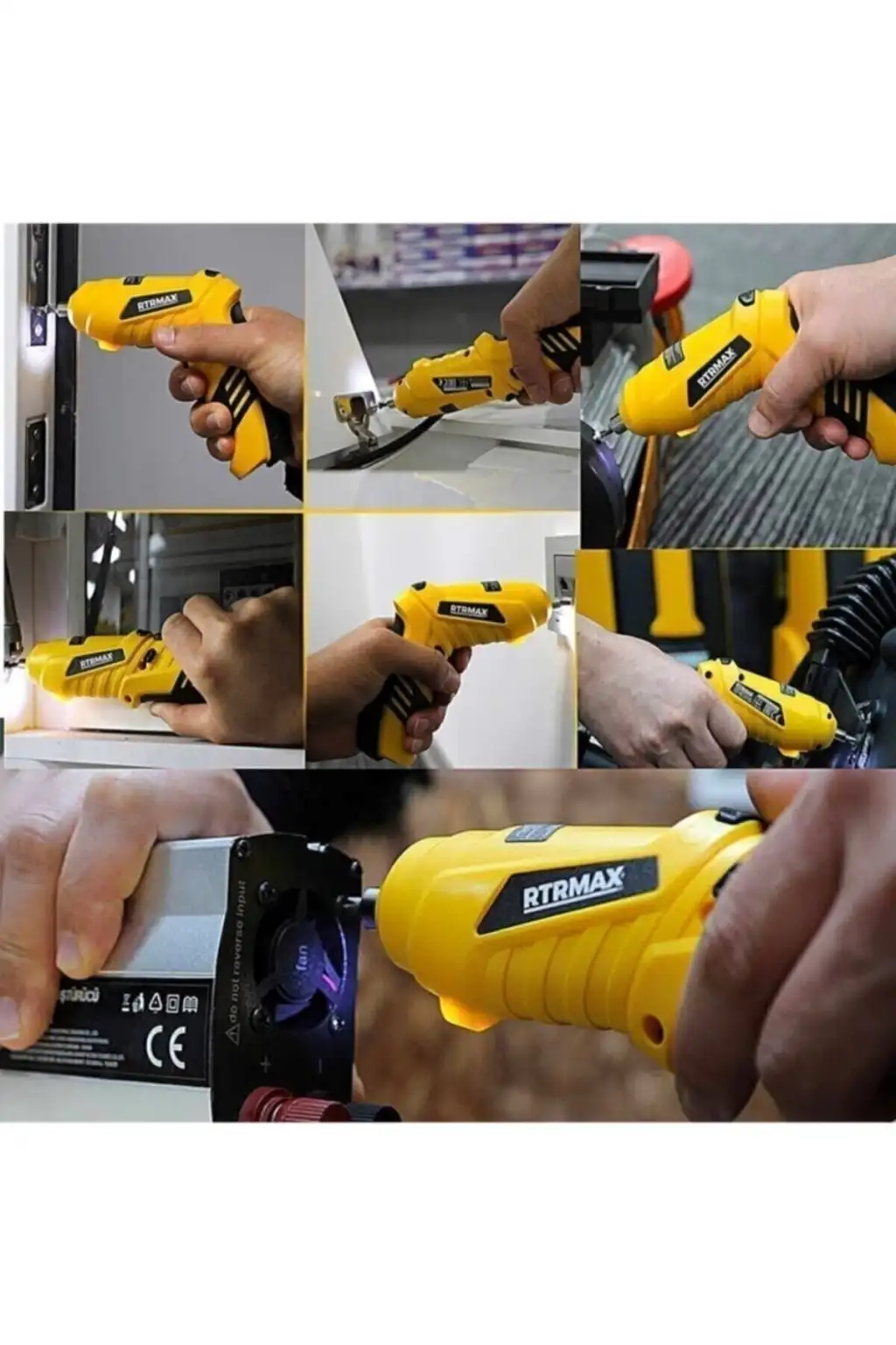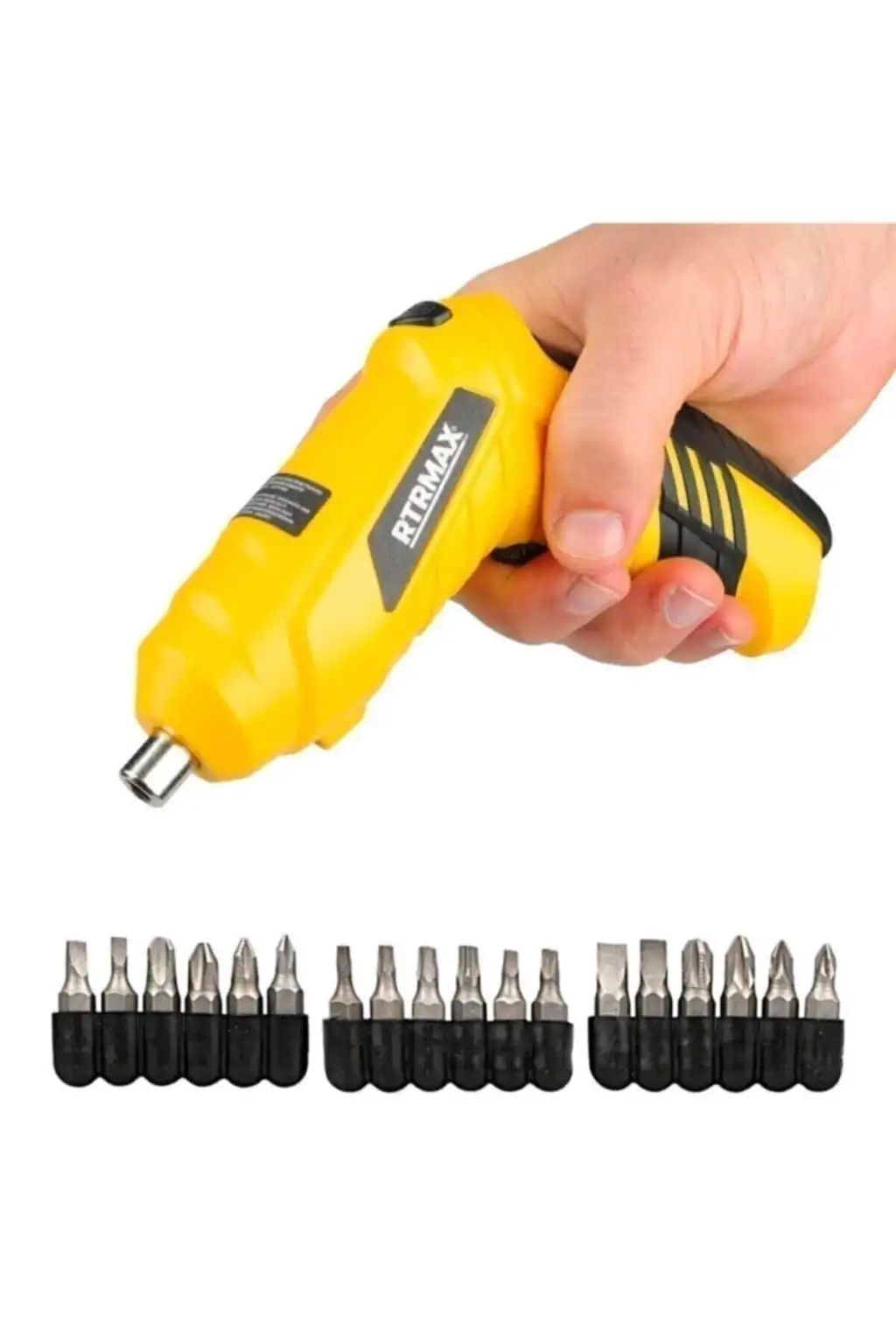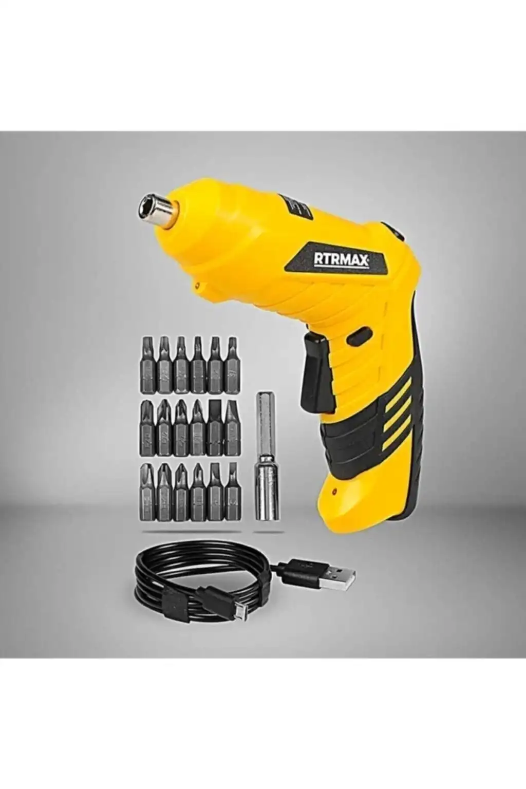 Rtm326 3.6v çift fonksiyonlu şarjlı akülü vidalama seti rtrmax rtm326 şarjlı tornavida akülü vidalama seti led ışıklı usb şarj kablolu 18 adet vidalama ucu 1 adet vidalama somunu