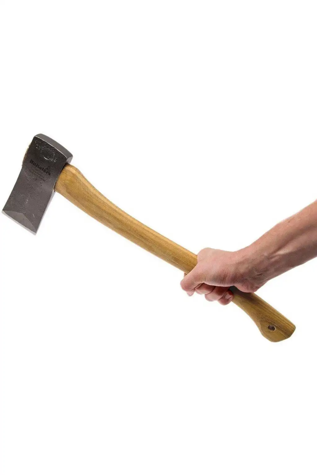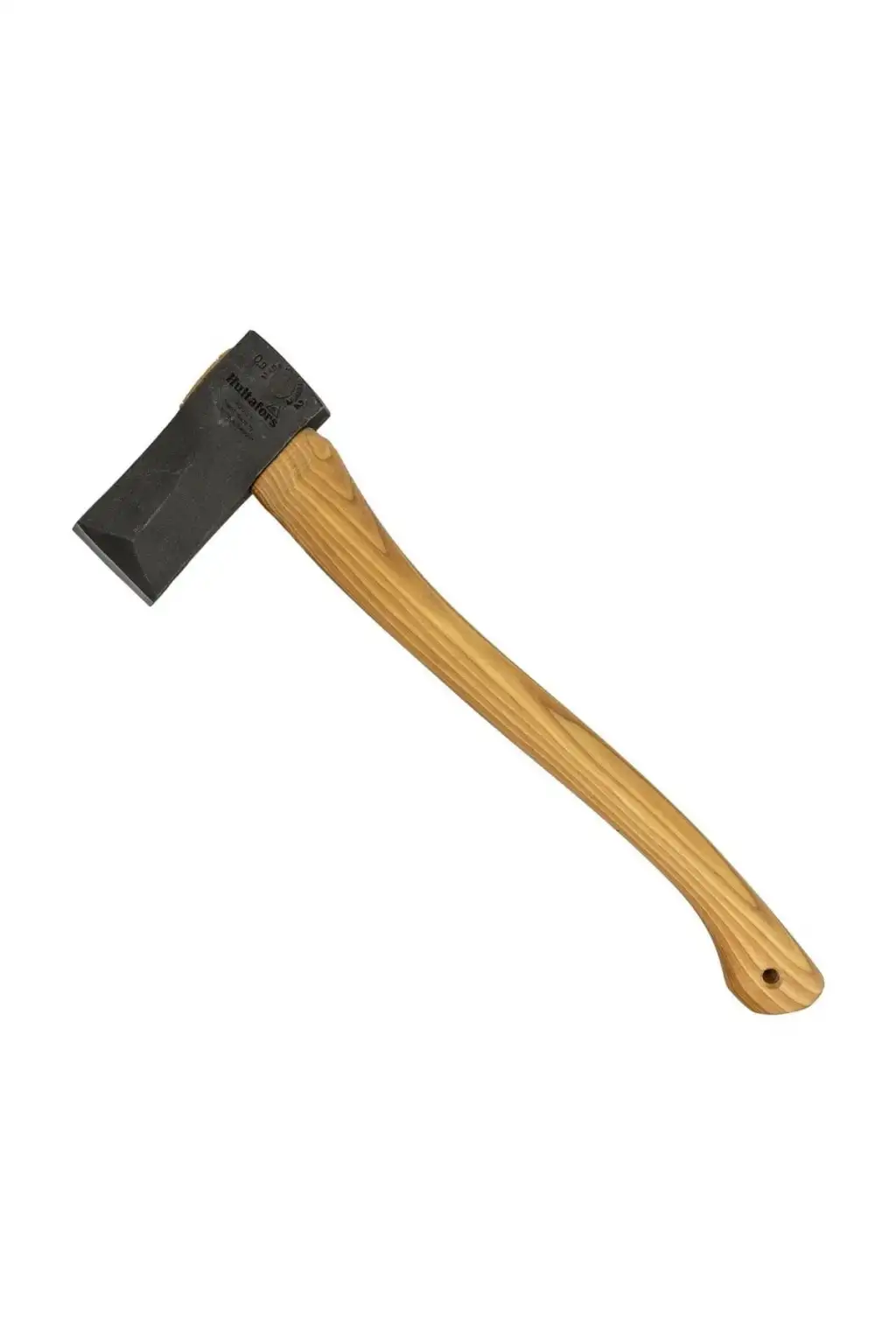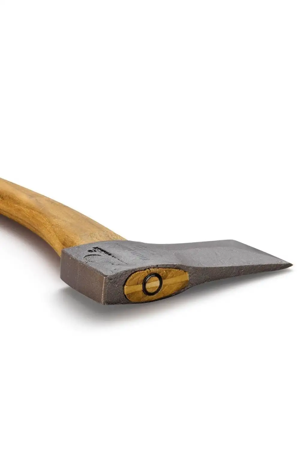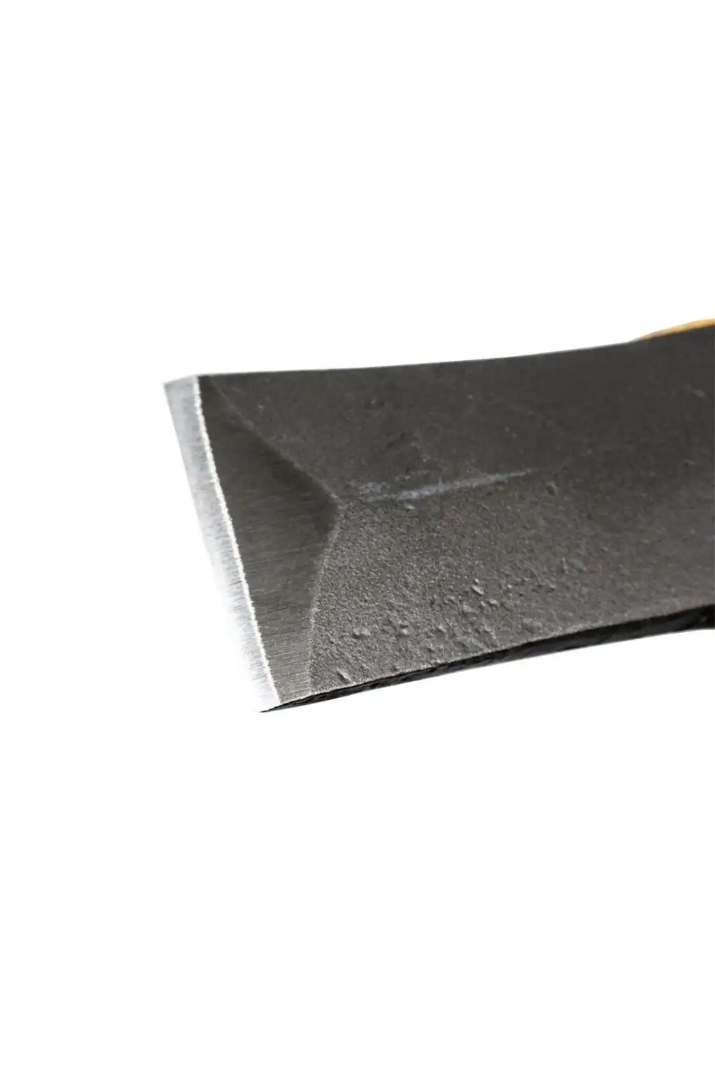 Kumlanmış ve şeffaf cilalı demirden yapılmış yarma baltası. Daha ağır balta, daha güçlü ahşaba en uygunken, daha hafif balta, 'şömine ahşabının' temel yarma için en uygunudur. Sap kavisli ve Amerikan Ceviz Ağacı (hickory)'den yapılmıştır.