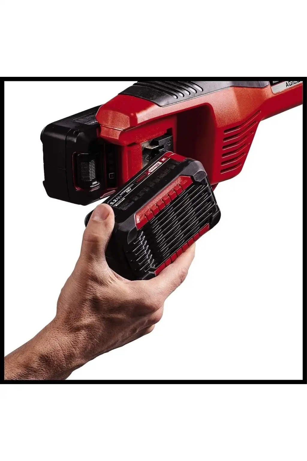 Eınhell agıllo akülü tırpan 2x18 volt (solo - Teslimat kapsamında akü ve şarj cihazı yoktur, haricen satın alınması gerekmektedir. Power-X-Change serisi akü ve şarj cihazlarıyla uyumludur.) Power x-Change akü sistemiyle çalışmaktadır ; Einhell kömürsüz motorlu ; Bisiklet tipi ; Bıçak ve misina ile birlikte teslim edilir ; Yüksek kaliteli ve konforlu taşıma kayışı ; Alüminyum mil sayesinde hafif yapılı ; Akü ve şarj cihazı olmadan satılmaktadır ; Eınhell agıllo akülü tırpan teknik özellikleri Maksimum hız :6300 devir/dakika ; Uzunluk :190 cm ; Kesme genişliği (bıçak) :25.5 cm ; Kesme genişliği (misina) :30 cm ; Ürün ağırlığı :6.09 kg ; Boyutlar :1130x350x160 mm ; ;