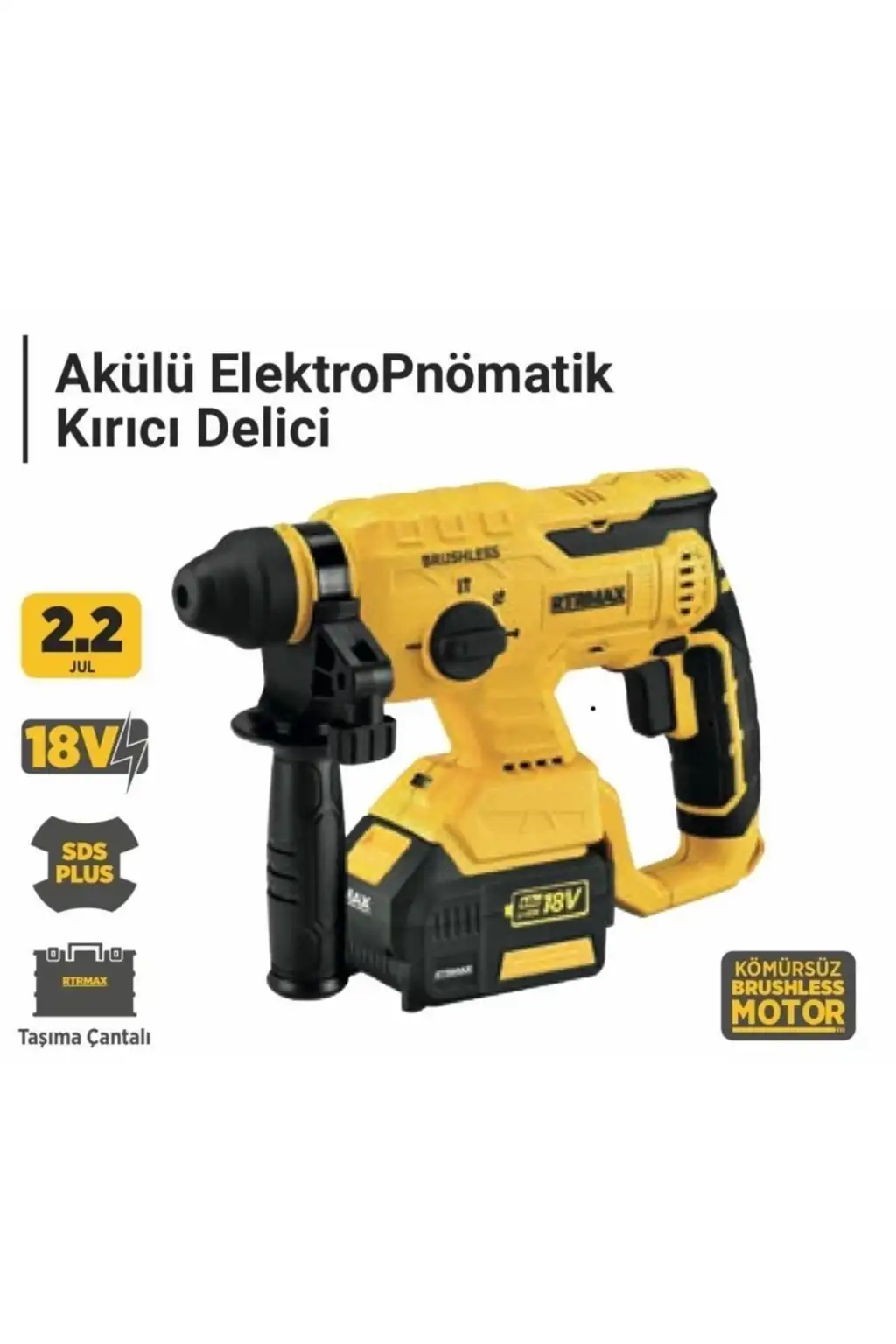 AKÜLÜ KIRICI-DELİCİ KÖMÜRSÜZ 2.2J 22MM 2x4 Ah AKÜ RTRMAX X-LION