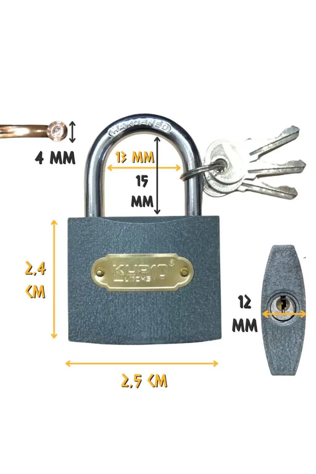 Kupa Asma Kilit Gri 25 Mm. - 3 Anahtarlı