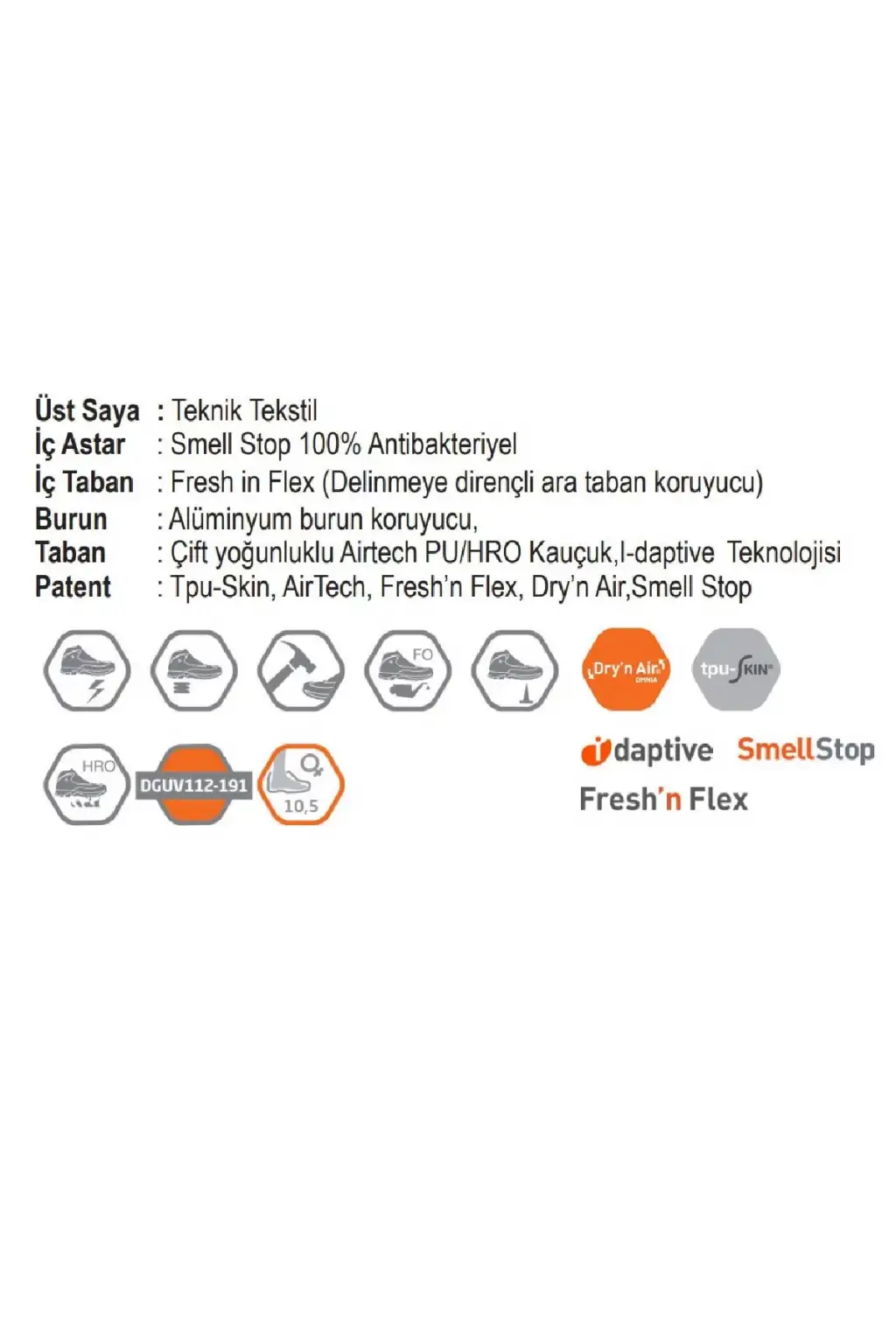 IDAPTIV teknolojisine sahip şık ve modern bir güvenlik botudur. Kullanıldığı çevreye uyum sağlamanın yanı sıra iyi bir duruş sağlamaya yardımcıdır. Suya dayanıklıdır. Hafifletilmiş özel alüminyum burnu ile parmaklarınızı korur.