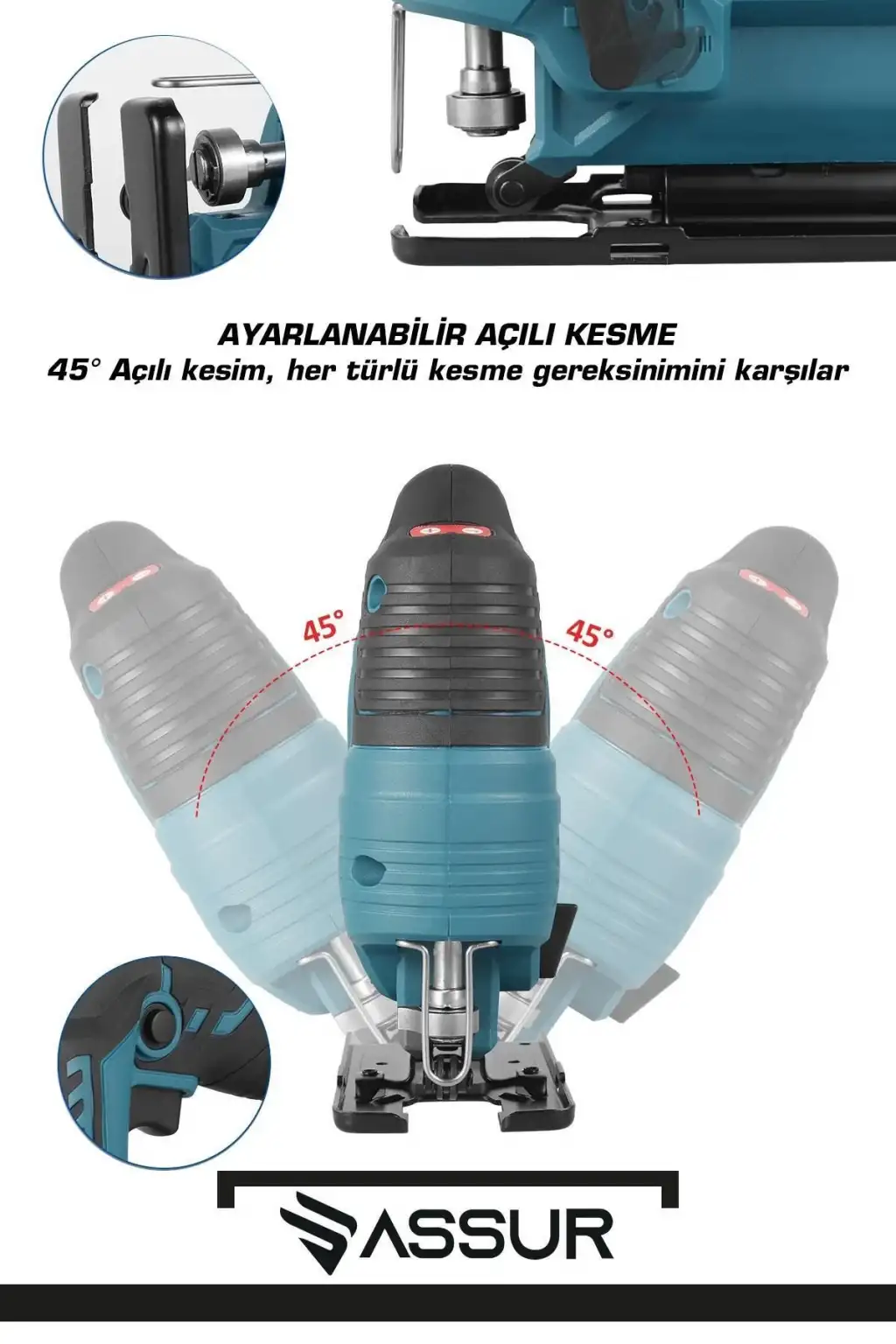 Assur Bakır Sargılı 800 W Professional Devir Ayarlı Dekupaj Bıçkı Testere Makinası Sarı