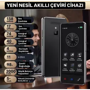 Üst Düzey İş Tercümanı WiFi Gerektirmez ChatGPT AI Ses Resim Çevirme Özelliği 138+ Dil Çeviri