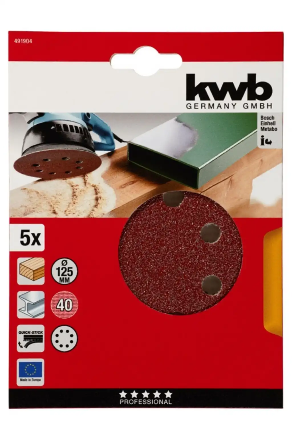 Zımpara diskleri Ø 125 mm, ; Ahşap ve Metal Korund Alüminyum oksid en iyi kalitede, ; Tam sanatsal reçine ile güçlendirilmiş taşıyıcı malzeme, ; kadife arka taraflı, metal ve ahşap, boya, spatula, taş ve plastik zımparalanmak için delikli eksantrik zımpara ;