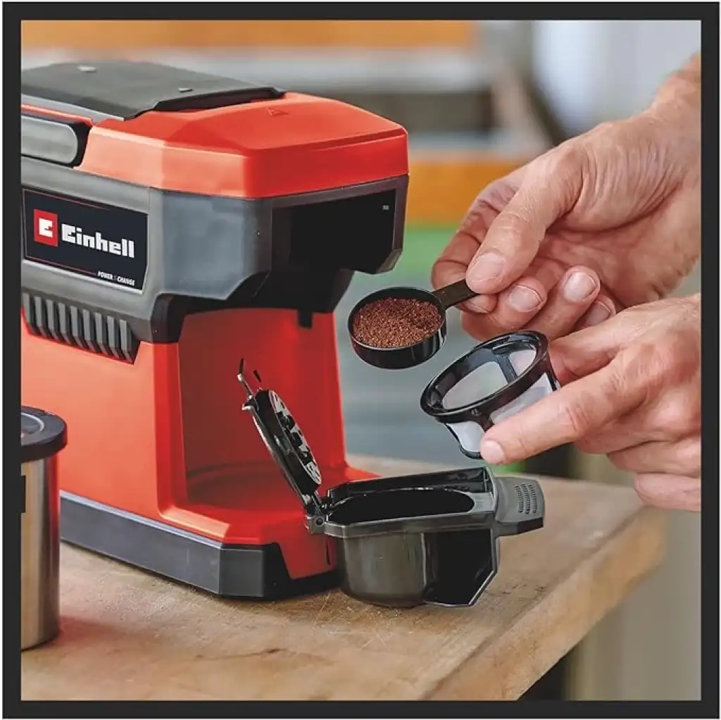 Einhell TE-CF 18 Li-Solo Power X-Change akülü kahve makinesi (18 V, 240 ml su kabı, filtre kahve ve kahve pedleri için, taşıma sapı, kapaklı kahve fincanı dahil, pilsiz)