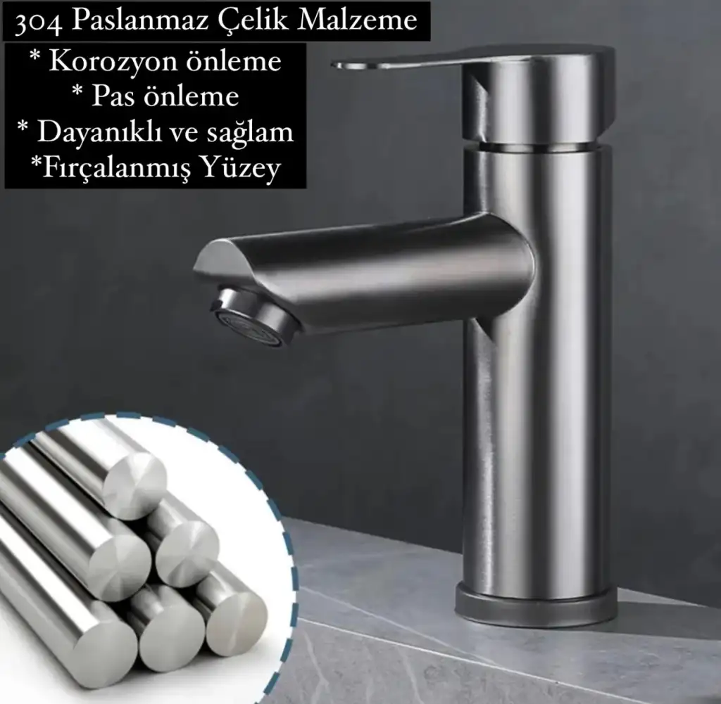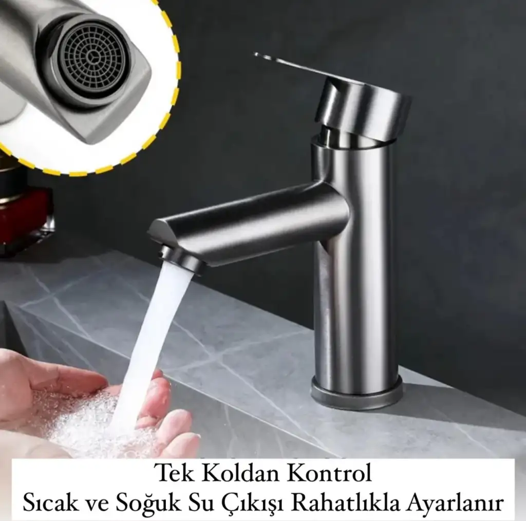 Ev Banyo Lavabo Batarya Paslanmaz Çelik Tek Kollu Sıcak Soğuk Ayarlı Modern