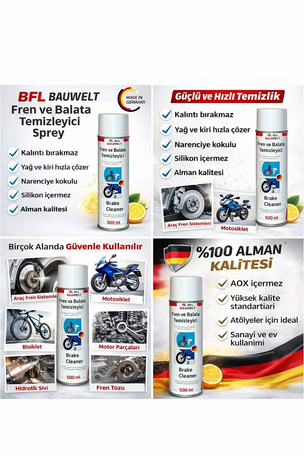 DETAYLAR - Narenciye kokulu şeffaf fren temizleyici hızla etki eder, herhangi bir kalıntı bırakmadan tamamen temizler ve yağdan arındırır. Aynı zamanda çok kullanışlıdır, pek çok yerde kullanılabilir. AOX içermez