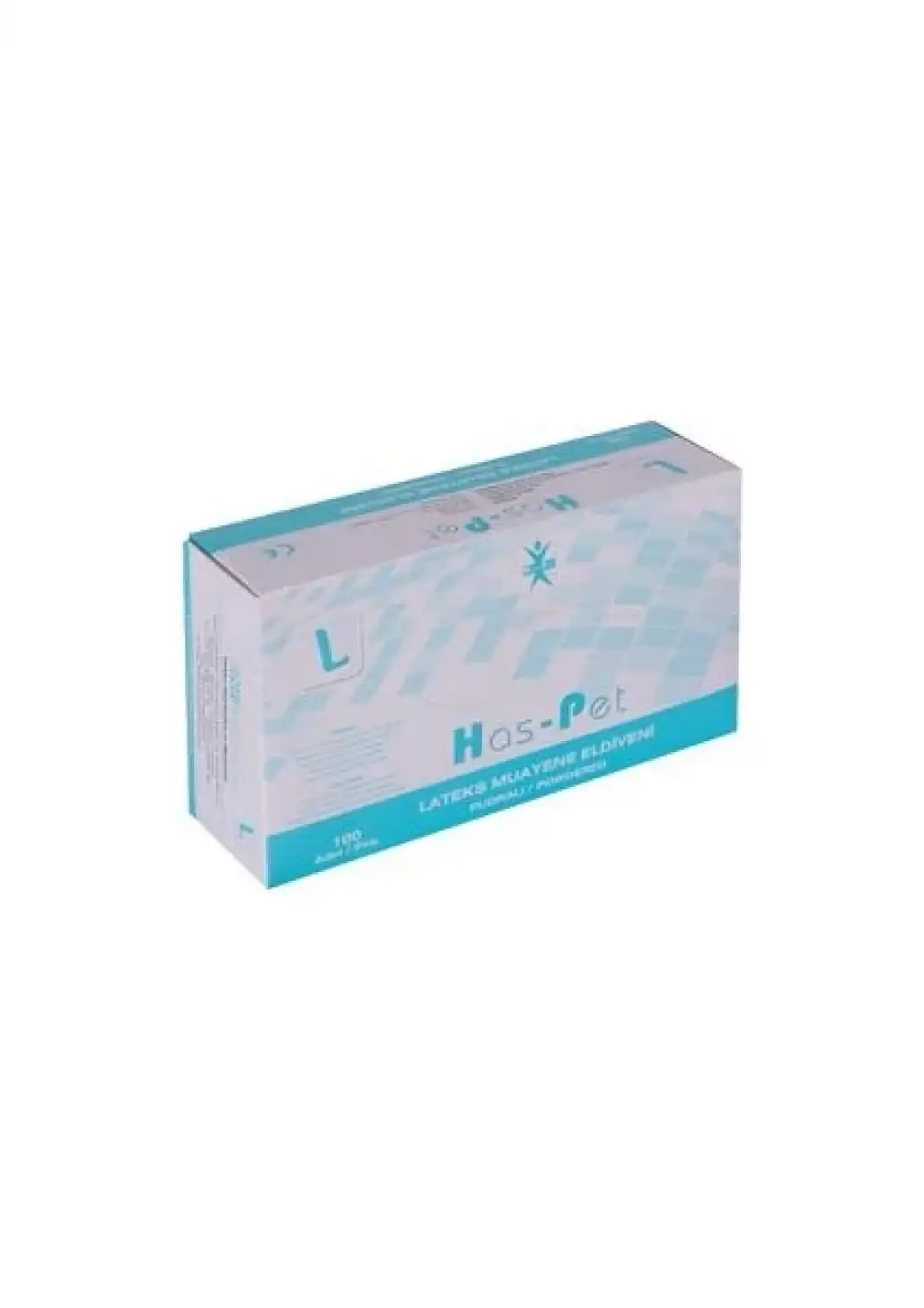 Has-Pet Lateks Pudralı Büyük Boy (L) Muayene Eldiveni 100 lü 8680361794583