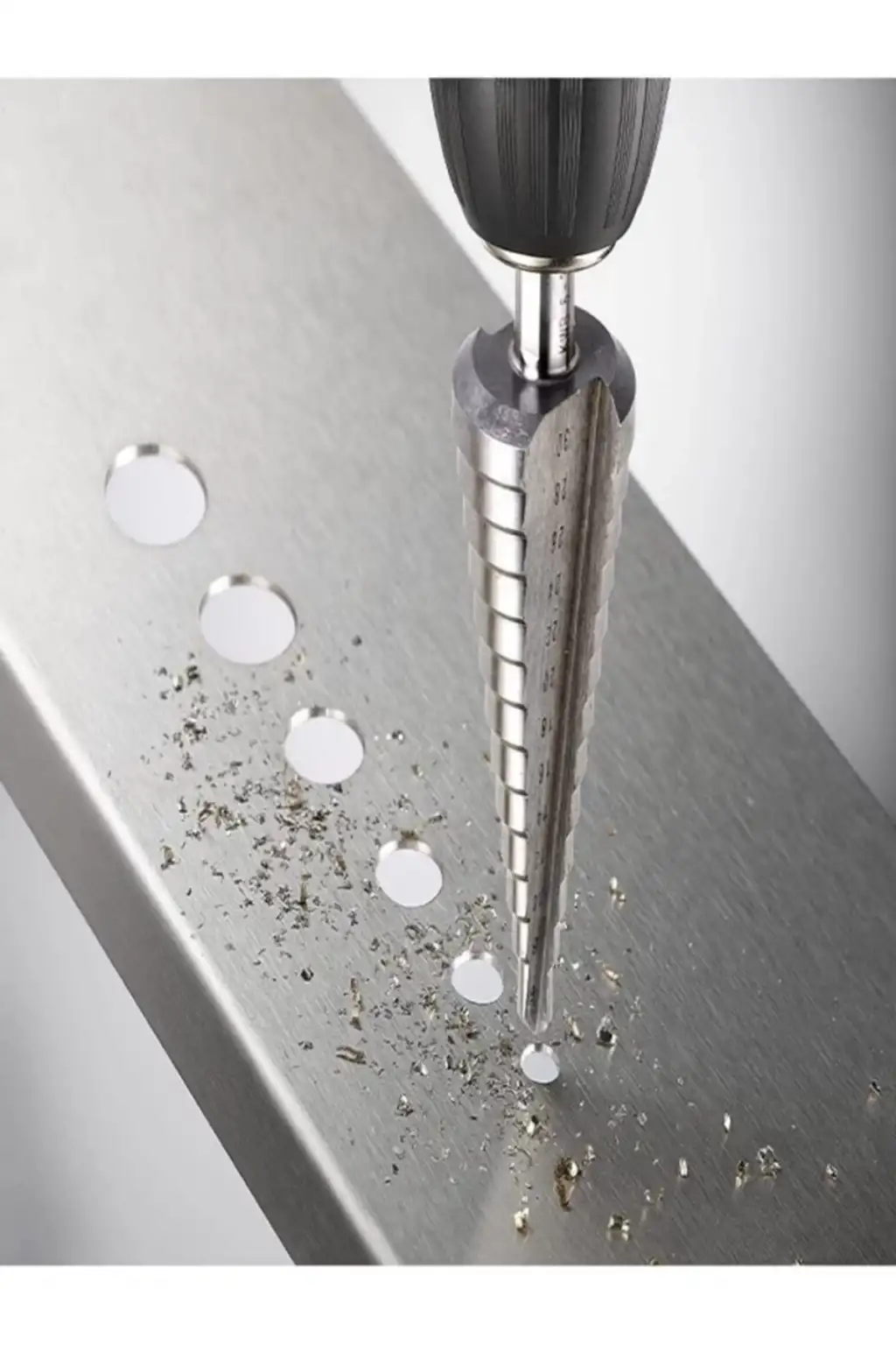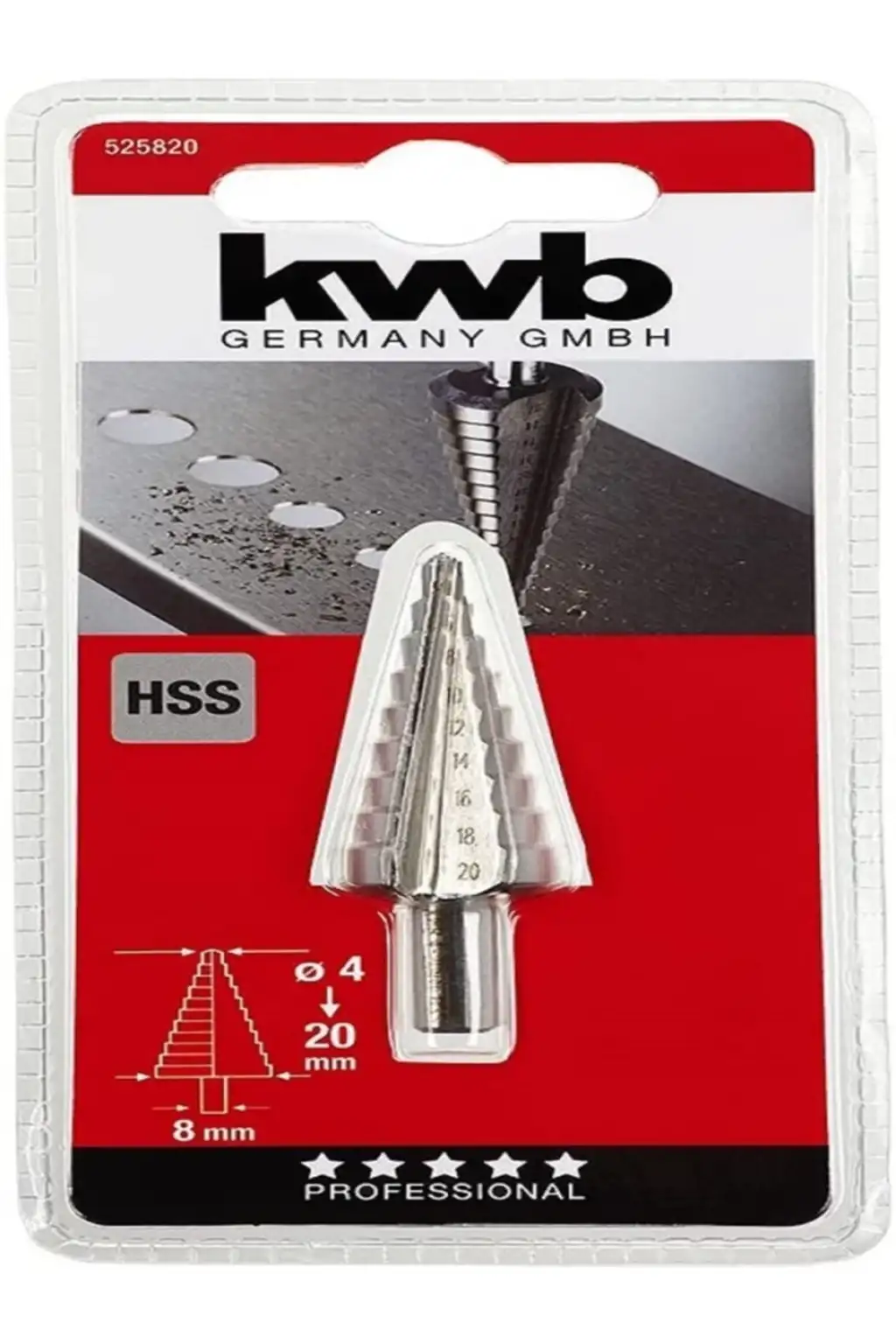 Einhell Kwb 49525820 Hss Kademeli Metal Yüzey Delme Ucu 4-20mm Kademeli matkap, HSS, küçük, büyük çapları en ince levhalara önceden delmeden, kenar kırıcılardan kaynaklanan çapaksız, soğuk kaynaksız, en yaygın delme çaplarında, çelik saclar için, demir dışı metaller ve plastik için delik delmek için delik delme için HSS. Özellikleri: Kademesiz delme Çapaksız delme Demir çelikleri ve plastikleri değil çelik saclar için
