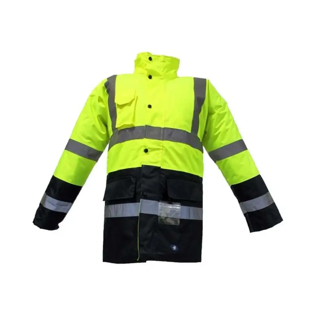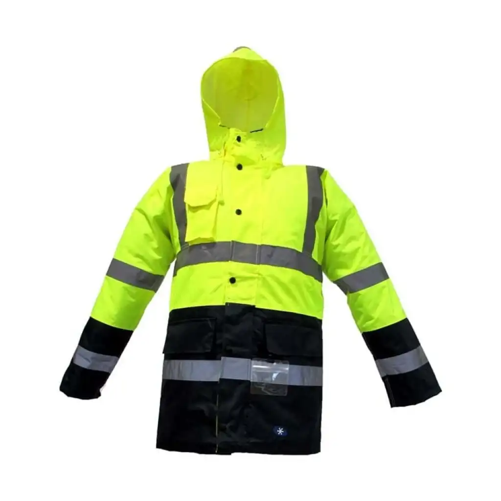 Yüksek boyunlu gizli kapuşon, kapuşon kordon lastikli Çift yönlü çıtçıtlı fermuar. alt kısmda iki adet düz kapaklı cep iç kısımda portföy cep bir adet telefon cebi, iki adet omuzdan iki adet gövdeden her iki koldan reflektörlü bant. Kimlik kart koyma yeri vardır.