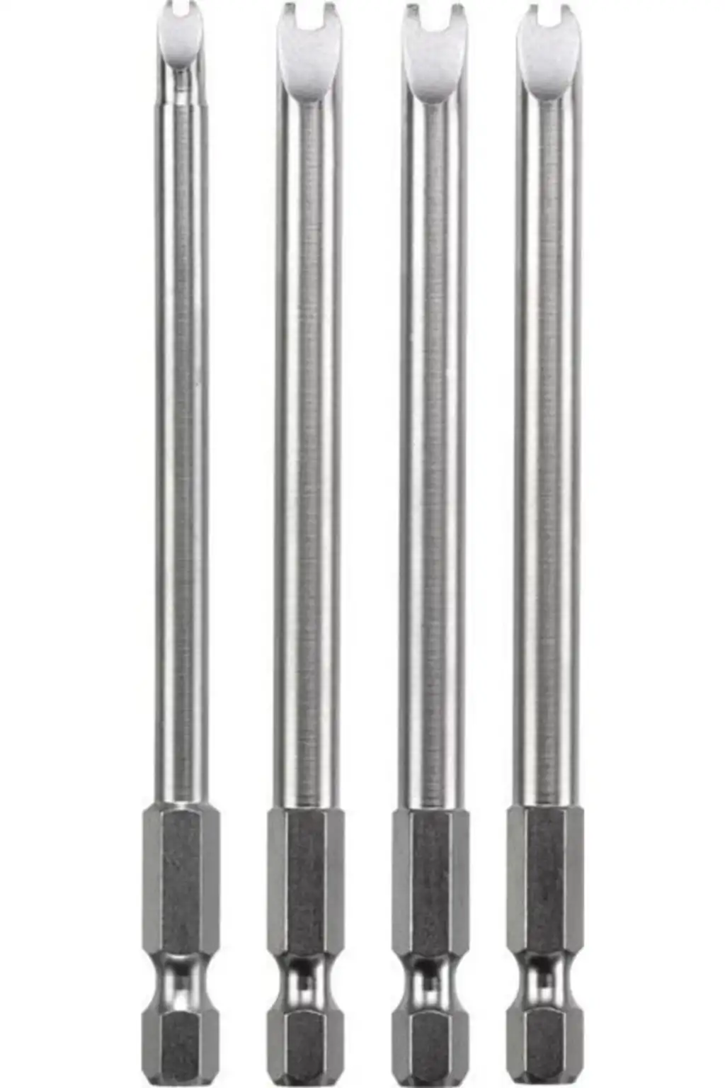 KWB SAFETY Gergi uçları, 100 mm - 129340 Anahtar noktalı GÜVENLİK uçları, 4 parçalı set. Güvenlik vidası uygulamaları için özel olarak geliştirilmiş uçlar. Ev aletleri ve tüketici elektroniği dahil. Yüksek kaliteli TQ 60 çelik. Derin ayarlı veya ulaşılması zor vidalara ulaşmak için ekstra uzun 100 mm uçlar. 1/4 ile?? E 6.3 mil. Saten kaplamalı yüzey.