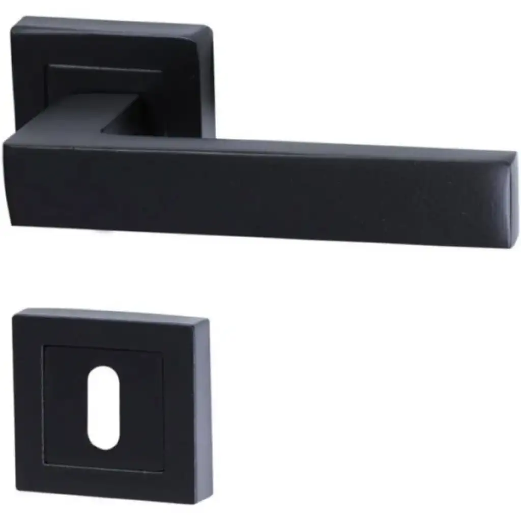 Lama Kare Rozetli Mat Siyah Oda Kapı Kolu / 1 Takım (2 ADET-ÖN VE ARKA)