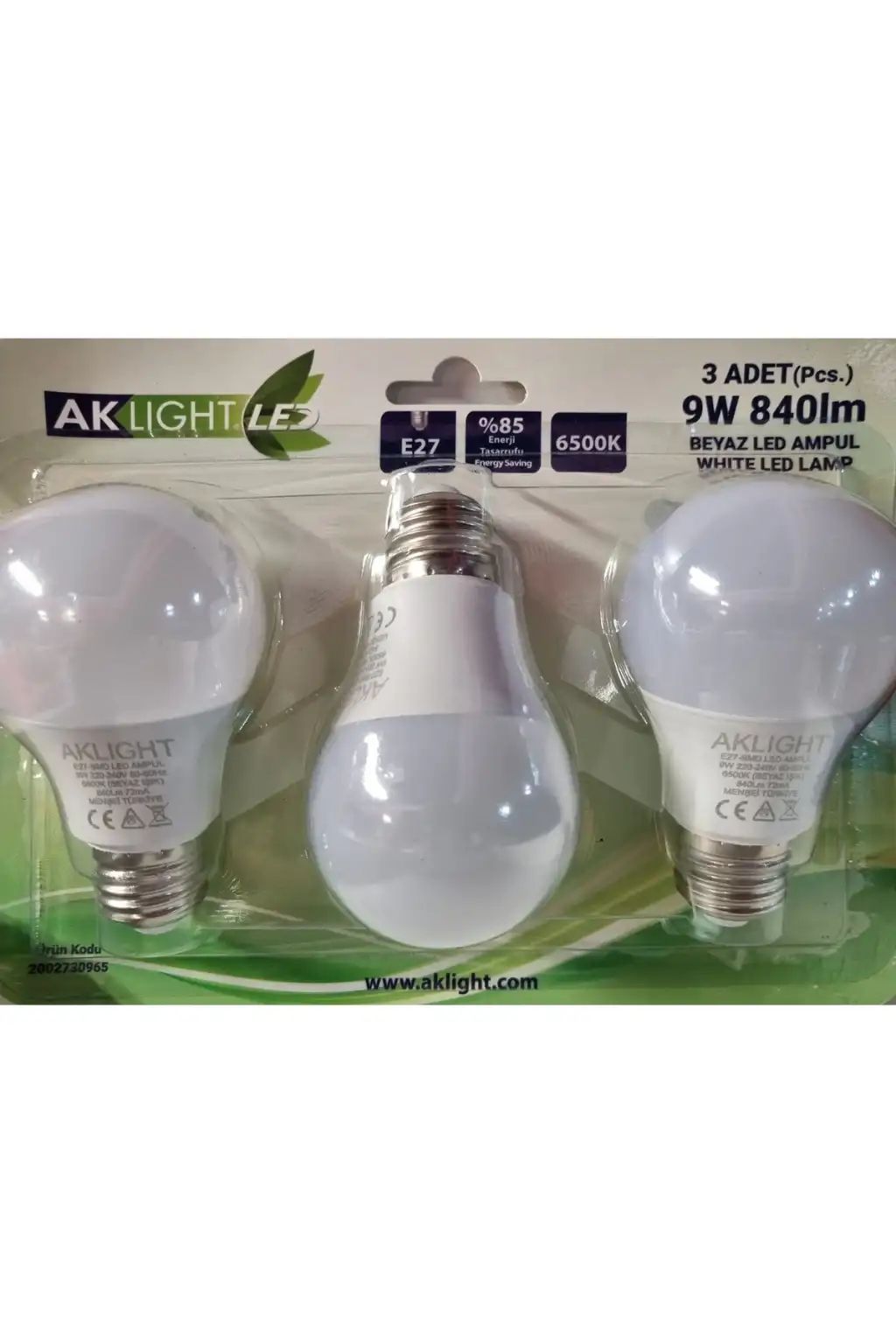 Aklight LED 9W/6500K 840lm E27 BEYAZ IŞIK 3LÜ PAKT