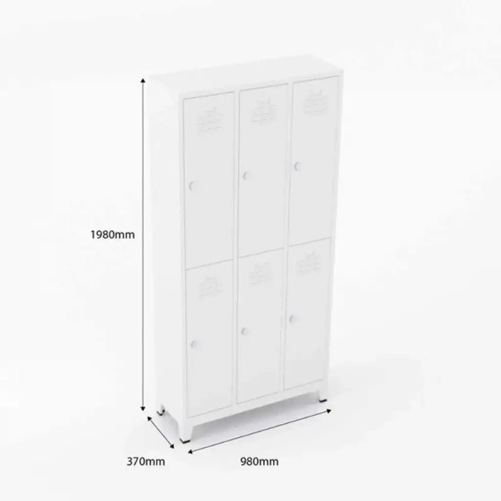 Metal Standart Soyunma Dolabı 6lı T-E06, okullar, spor salonları, fabrikalar ve iş yerleri dahil olmak üzere çeşitli ortamlar için mükemmeldir. Kişisel eşyaların güvenli bir şekilde saklanması gereken her yerde tercih edilebilir. Nötr rengi ve şık tasarımı ile her türlü iç mekana kolayca uyum sağlar ve organizasyon ihtiyaçlarına pratik çözümler sunar.