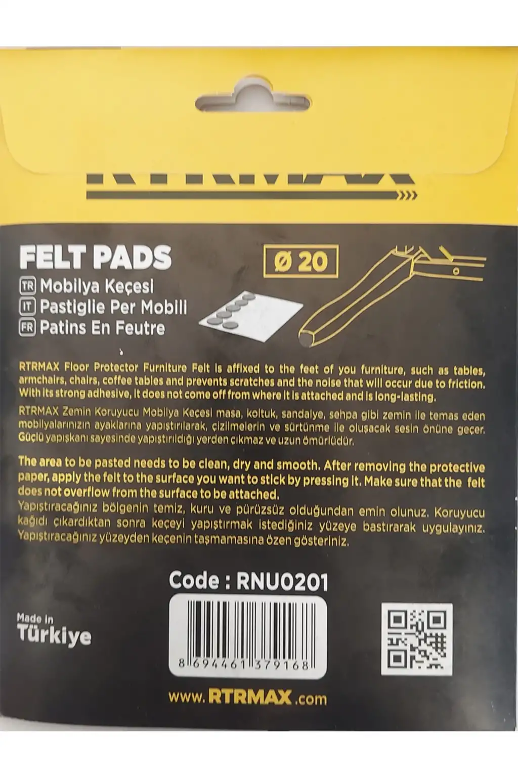 RTRMAX Zemin Koruyucu Mobilya Keçesi masa, koltuk, sandalye, sehpa gibi zemin ile temas eden mobilyalarınızın ayaklarına yapıştırılarak, çizilmelerin ve sürtünme ile oluşacak sesin önüne geçer. Güçlü yapışkanı sayesinde yapıştırıldığı yerden çıkmaz ve uzun ömürlüdür. ;