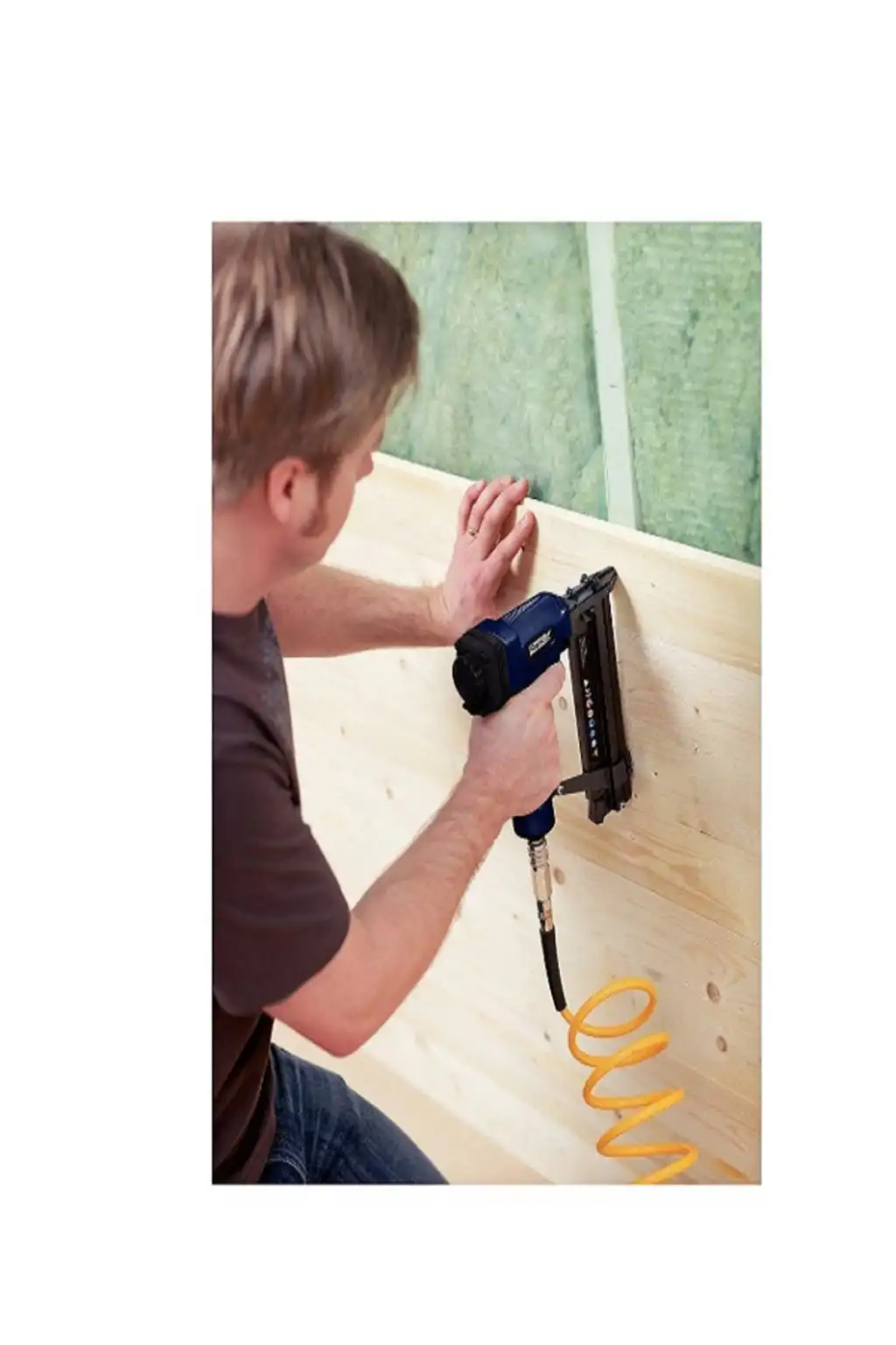 -Profesyonel düzeyli, dual dar başlı zımba ve çivi çakma tabancası. -Yüksek tempolu mobilya, lambri, dolap üretimi, son işlem ve ince işler için ideal. Özellikler: -40 mm zımba teli ile 50 mm çivi’yi çakar -Temas tahrikli tetik -360° ayarlanabilir hava egzozu – tozları çalışma alanları dışında tutar -Güçlü ve dayanıklı, hafif magnezyum ana gövde -Ayarlanabilir derinlik mekanizması -Hızlı yükleme sistemi -Rahat kavrama -Dar başlı zımba telleri ve başsız çiviler için çift kartuş