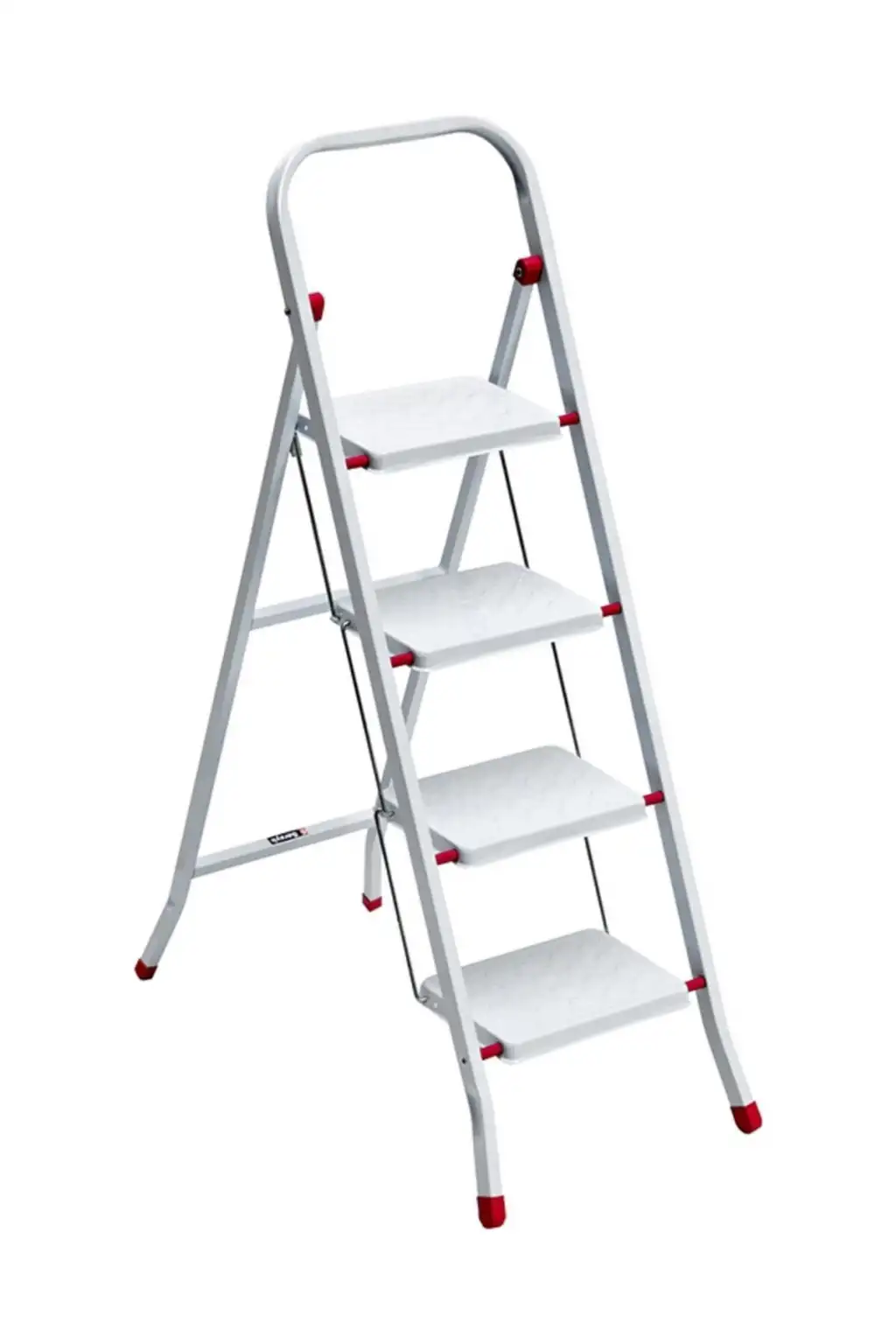 Pratik Metal Merdiven Beyaz 4 Basamaklı Güvenli Kilit Sistemi Kaymaz Basamaklar