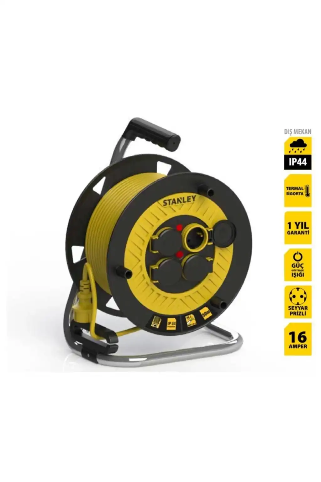 Elektriğe ulaşmanın en güvenilir ve kolay yolu STANLEY KABLO kullanmaktır. Eğer elektrik kaynağına uzaksanız ve bunun için gerekli altyapı yoksa yanınıza STANLEY KABLO'yu alın ve sorunu ortadan kaldırın. Teknenizde, karavanınızda, bahçenizde, kampta, yazlıkta, atölyede, doğa alanlarında, fabrika alanlarında, yeraltı çalışma alanlarında, şantiye alanlarında, inşaat esnasında, tamirat esnasında,, hassas teknik cihazların kullanımında, sorunsuz ve güvenilir kullanım için size STANLEY Makaralı kablo ve uzatma kabloları sizinle... İşiniz ve neşeniz yarıda kalmasın...!. Dünyanın en kaliteli Makaralı Kablo Markası artık Türkiye'de üretiliyor ve tüm dünyada kullanıcıları ile buluşuyor. Hem, yerli üretimin getirdiği fiyat avantajı hem de dünya standartlarında, güvenilir bir markalı ürün... Makaralı kablolarda, ürün kullanılırken kablonun tamamen açık olması önemlidir. Elektrik yük miktarının yüksekliği, kalitesiz kullanılan kablo ürünün yanmasına yol açabilir. STANLEY Makaralı Kablolarda ürünün kablosu Halogen Free özellikte olup, alev yürümez özelliktedir ve olası yangın ihtimalini ortadan kaldırır. Ayrıca Stanley Makaralı Kablolarda ürünün bünyesinde bulunan termik (Termal Sigorta) sayesinde üründe aşırı ısınma meydana gelmez. 25 Metre, 3x2,5mm uzunluğunda %100 bakır kablo kullanılmıştır. Kablo kılıfı Kauçuktur. Kauçuk, kabloya kırılmaya ve ezilmeye karşı dayanıklılık sağlar. 4 Adet kapaklı soket mevcuttur. IP44 koşullarında kullanıma uygundur. Alüminyum makara ve plastik tutma kolu ürün kullanımı açısından ergonomiktir. Güç gösterge ışığı mevcuttur. CE, EAC, RoHS, REACH, PAHs ve TUV NORD Kalite sertifikasyon ve yeterliliğine sahiptir. 16 Amper'e kadar elektrik yük aktarımı için idealdir. Ürün, 1 yıl distribütör garantilidir.