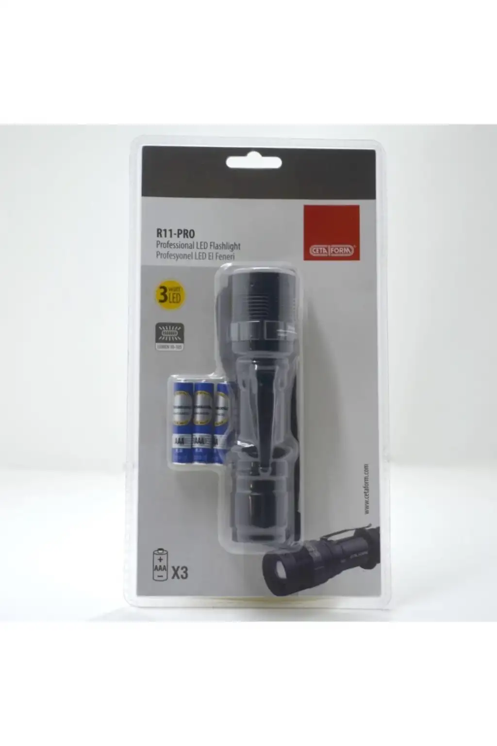 3 WATT EXSTRA güçlü LED Zoom özellikli max 105-min 10 lümen Cep / kemer klipsi 3xAAA pil (dahil)
