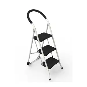 Saraylı Pratik Metal Merdiven Beyaz 3 Basamaklı Güvenli Kilit Sistemi Kaymaz Basamaklar