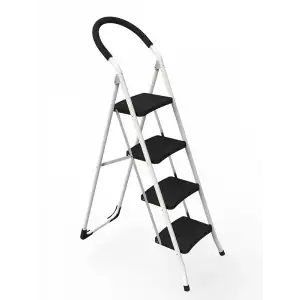 Saraylı Pratik Metal Merdiven Beyaz 4 Basamaklı Güvenli Kilit Sistemi Kaymaz Basamaklar
