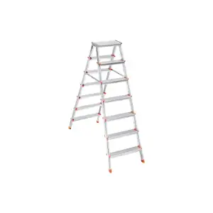 Saraylı Paslanmaz Alüminyum Çift Çıkışlı Çift Taraflı Seyyar Merdiven 7+7 Basamaklı