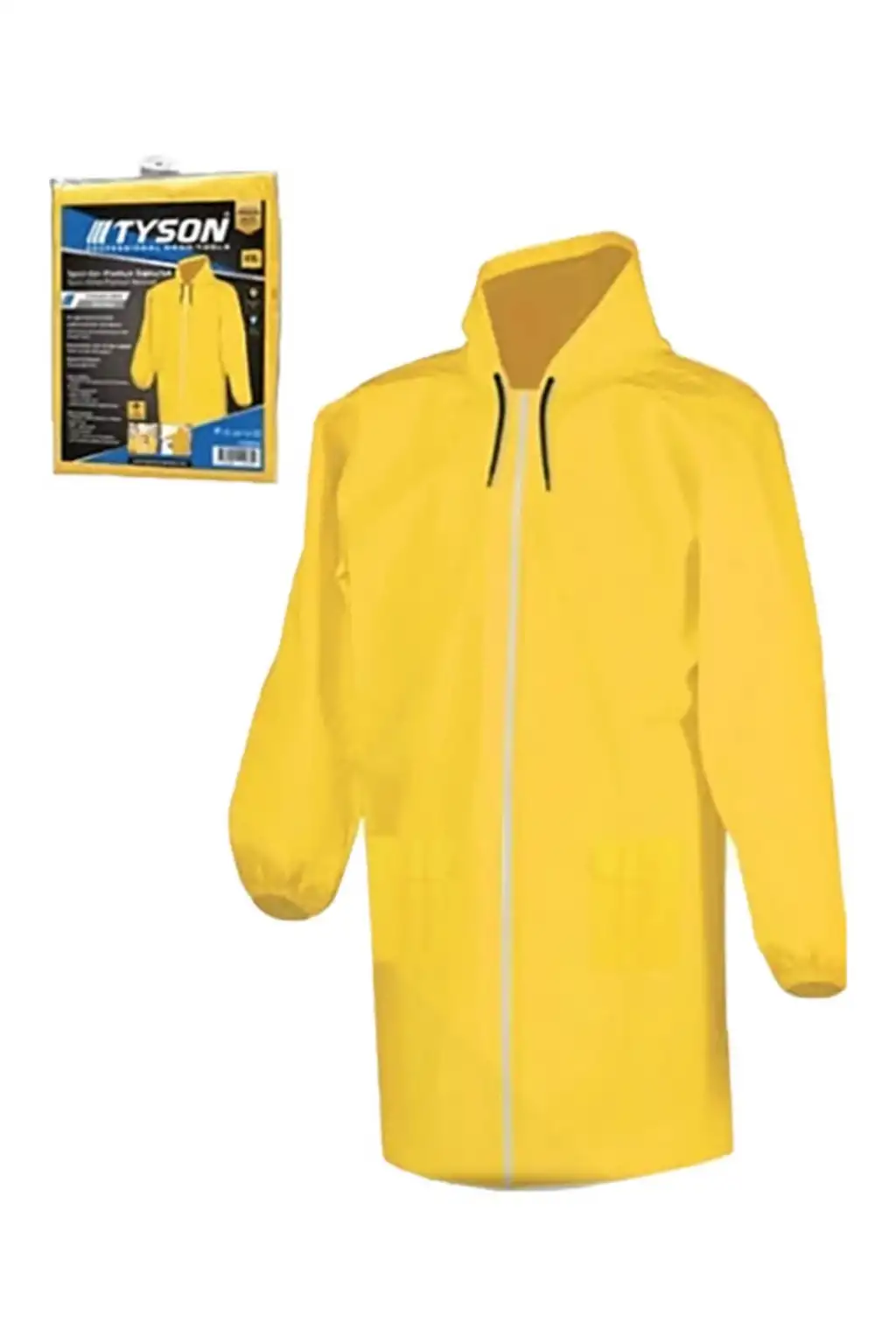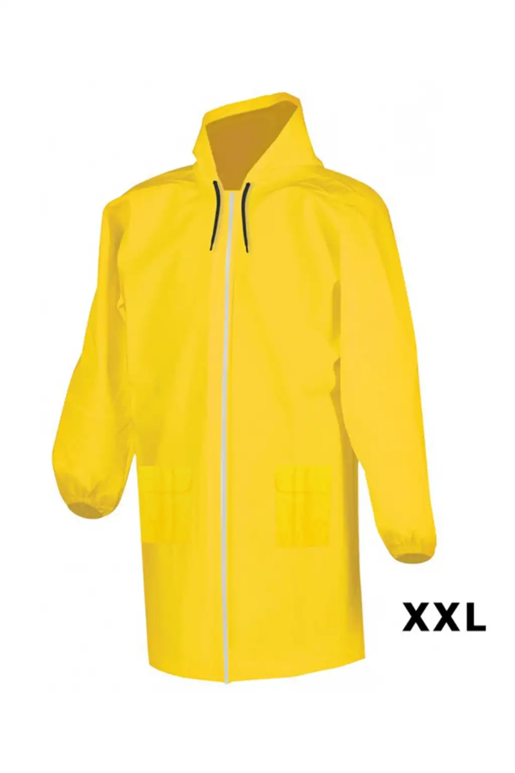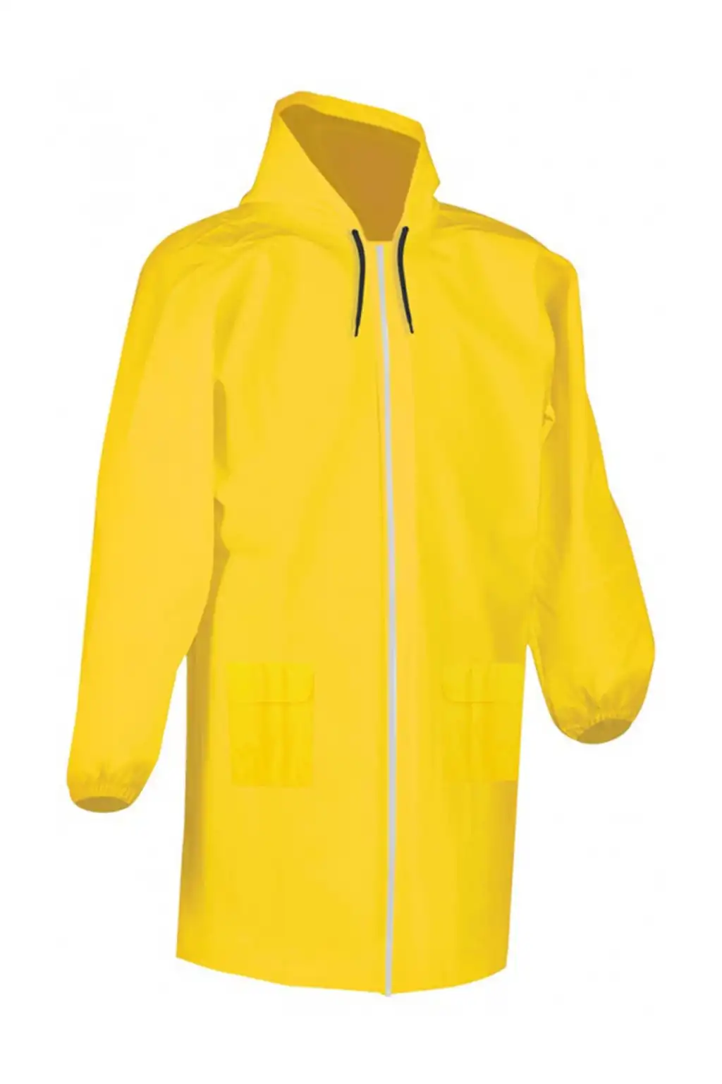 – polyester çift katman pvc ile kaplanmış astarsız ; – %100 su geçirmez ; – önden düğmeli ; – 2 adet ön altta cep ; – kendinden başlıklı kapşonlu yapı ;