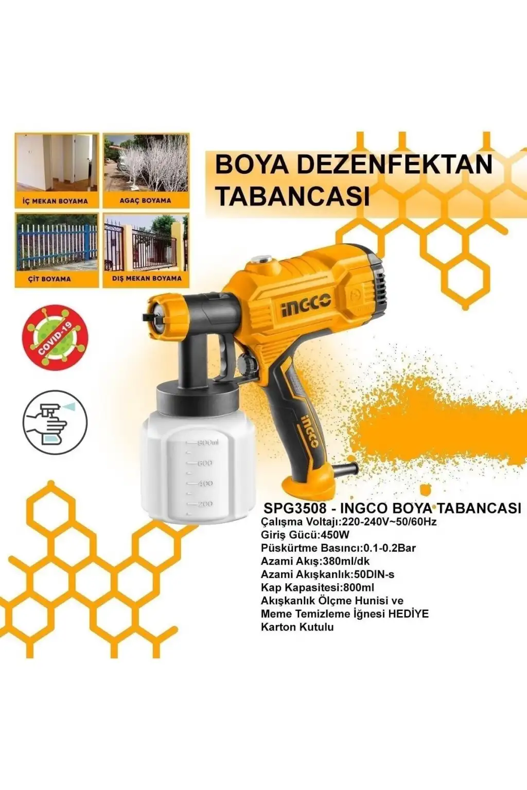 Ingco SPG3508 450W Elektrikli Boya ve Dezenfektan Tabancası