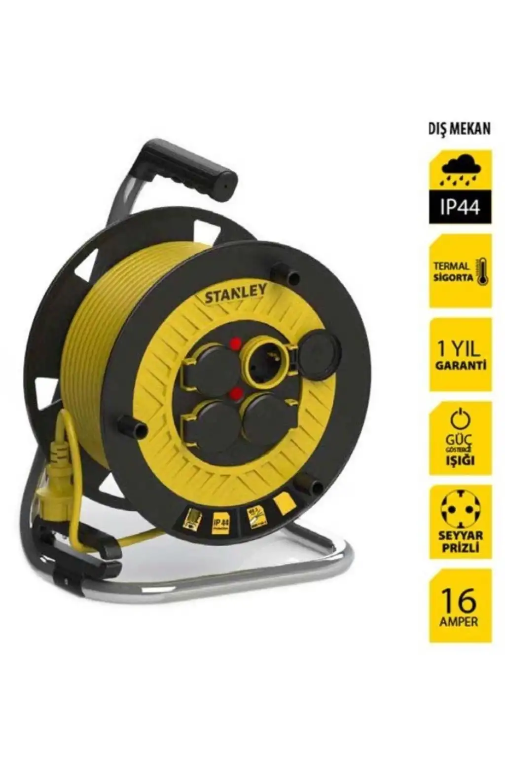 STANLEY ST-P-2525 Makaralı Ara Kablo 3x2.5 mm 25 Metre Elektriğe ulaşmanın en güvenilir ve kolay yolu STANLEY KABLO kullanmaktır. Eğer elektrik kaynağına uzaksanız ve bunun için gerekli altyapı yoksa yanınıza STANLEY KABLO'yu alın ve sorunu ortadan kaldırın. Teknenizde, karavanınızda, bahçenizde, kampta, yazlıkta, atölyede, doğa alanlarında, fabrika alanlarında, yeraltı çalışma alanlarında, şantiye alanlarında, inşaat esnasında, tamirat esnasında,, hassas teknik cihazların kullanımında, sorunsuz ve güvenilir kullanım için size STANLEY Makaralı kablo ve uzatma kabloları sizinle... Dünyanın en kaliteli Makaralı Kablo Markası artık Türkiye'de üretiliyor ve tüm dünyada kullanıcıları ile buluşuyor. Hem, yerli üretimin getirdiği fiyat avantajı hem de dünya standartlarında, güvenilir bir markalı ürün... Makaralı kablolarda, ürün kullanılırken kablonun tamamen açık olması önemlidir. Elektrik yük miktarının yüksekliği, kalitesiz kullanılan kablo ürünün yanmasına yol açabilir. Ayrıca Stanley Makaralı Kablolarda ürünün bünyesinde bulunan termik (Termal Sigorta) sayesinde üründe aşırı ısınma meydana gelmez. 25 Metre, 3x2.5 mm uzunluğunda %100 bakır kablo kullanılmıştır. IP44 koşullarında kullanıma uygundur. (Dış Mekan) Plastik gövde ve metal tutma kolu ürün kullanımı açısından ergonomiktir. Güç gösterge ışığı mevcuttur. CE, EAC, RoHS, REACH, PAHs ve TUV NORD Kalite sertifikasyon ve yeterliliğine sahiptir. 16 Amper'e kadar elektrik yük aktarımı için idealdir. Uzunluk 25 metre Kablo: 3x2.5 mm, HO5VV-F Priz sayısı: 4 Adet