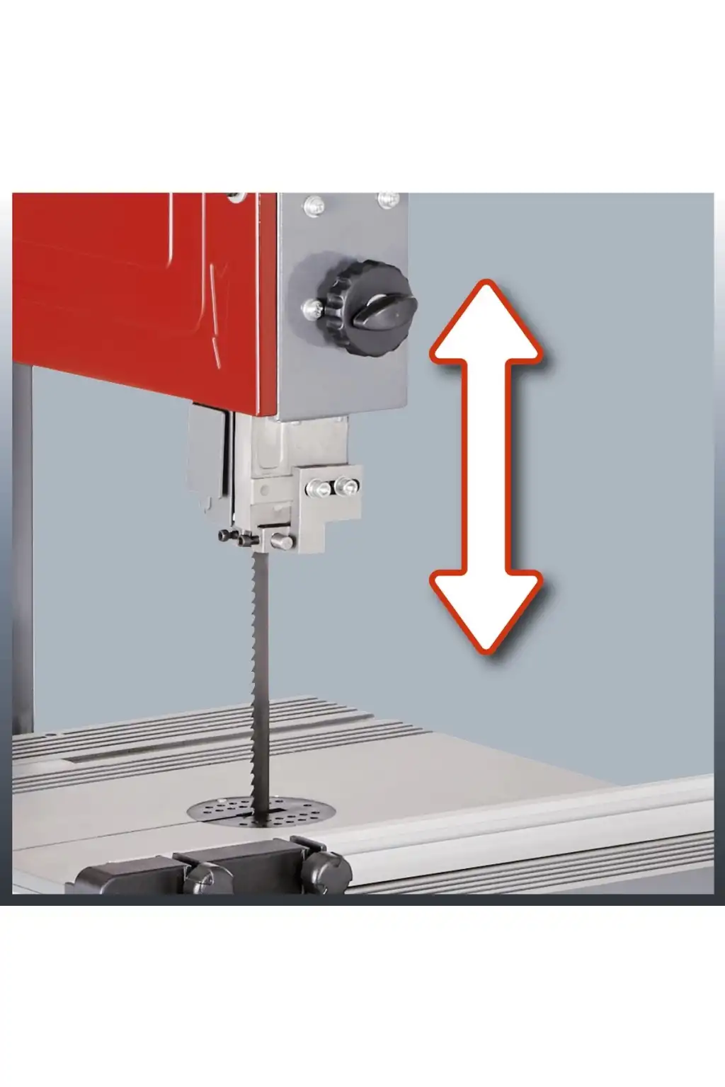 Einhell TC-SB 305 U Şerit Testere, ahşap, plastik ve benzeri malzemelerde boyuna, gönye ve serbest kesim için çok sayıda seçenek sunan, zorlu talepleriniz için güçlü, yüksek kaliteli ve iddalı bir üründür. Kesilmesi zor malzemeler için 750 W motoru çok fazla güç barındırır. TC-SB 305 U, şerit hız ayarı ve yüksekliği ayarlanabilen bıçak korumalı şerit testere kılavuzuna sahiptir. Şerit testere hızı, kayışlı tahrik ile kolay ve hızlıca ayarlanabilir. 0 ila 45 derece arasında kademesiz ayarlanabilir yatar testere tablası mevcuttur. Kesimleriniz için kademesiz ayarlanır açı kılavuzu ve paralellik mesnedi vardır. Elektrik kesintilerinde motoru korumak için sıfır voltaj anahtarı, stabilite ve uygun çalışma yüksekliği için sağlanan destek ayakları ve güvenlik için itme çubuğu ürünün önemli özelliklerindendir. Talaş çıkış bağlanıtısı mevcuttur.
