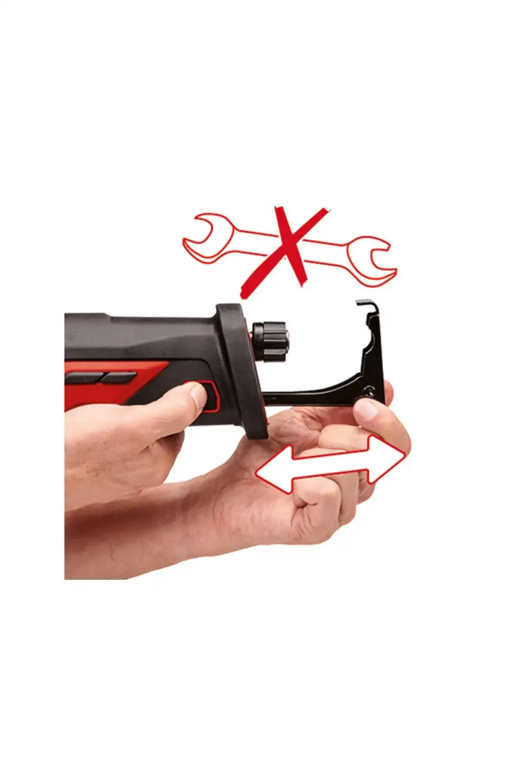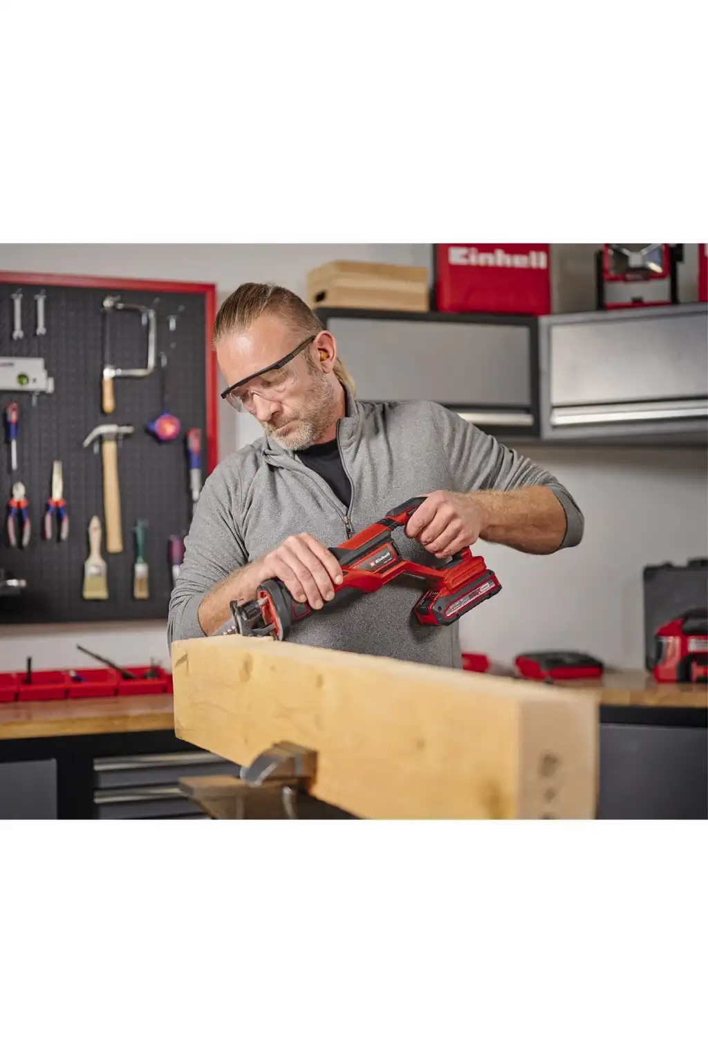 Einhell TE-AP 18/26 Li - Solo akülü kılıç testere atölyede, bahçede veya inşaat alanlarında birçok uygulama için mükemmel bir üründür. Power X-Change ailesinin bir üyesi olarak tüm PXC akü paketleri 200 farklı Einhell aletinde kullanılabilmekte ve kullanıcılara kablosuz çalışma özgürlüğü sunmaktadır. Titreşim önleme fonksiyonu sayesinde kullanıcılar cihazla uzun süreler boyunca dahi konforlu ve ergonomik bir şekilde çalışabiliyorlar. Taban levhası ayarlanabildiği için testere bıçağı optimum şekilde kullanılabiliyor. Kesme derinliği ahşap için 180 mm, plastik için 12 mm ve çelik için 8 mm'dir. Daha hızlı çalışma için, testere bıçağı alet kullanmadan çıkartılabiliyor. Yumuşak yüzeyli tutamak her an ergonomik tutuş imkanı sunuyor. Ünite olağanüstü kesim özelliklerine sahip bir adet üst kalite testere bıçağı (ahşap için) ile birlikte veriliyor. Şarj edilebilir akü ve şarj cihazı ayrı ayrı, örneğin ilgili performans sınıfından Einhell başlangıç seti olarak temin edilebilmektedir.