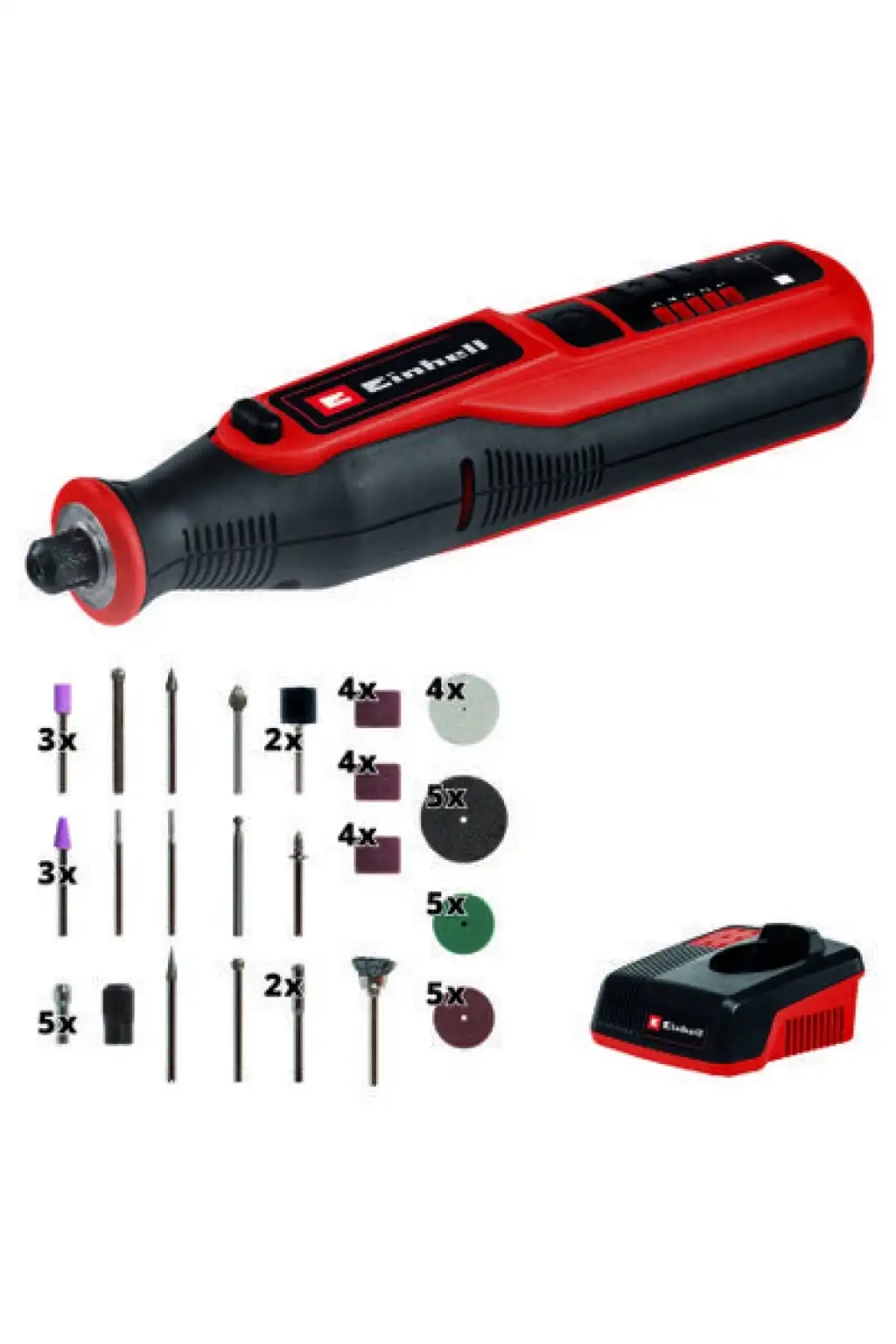Güçlü ve hassas uygulama için kullanışlı 7,2 V pil; LED ekranlı elektronik hız kontrolü; Kolay alet değişimi için kilitleme düğmesi; İş parçasının optimum aydınlatması için LED ışık halkası; Şarj istasyonu sayesinde her zaman çalışmaya hazır ; Optimum hassasiyet için ergonomik yumuşak kavrama; Çok amaçlı kullanım için kutusunda 57 parçalı aksesuar seti;