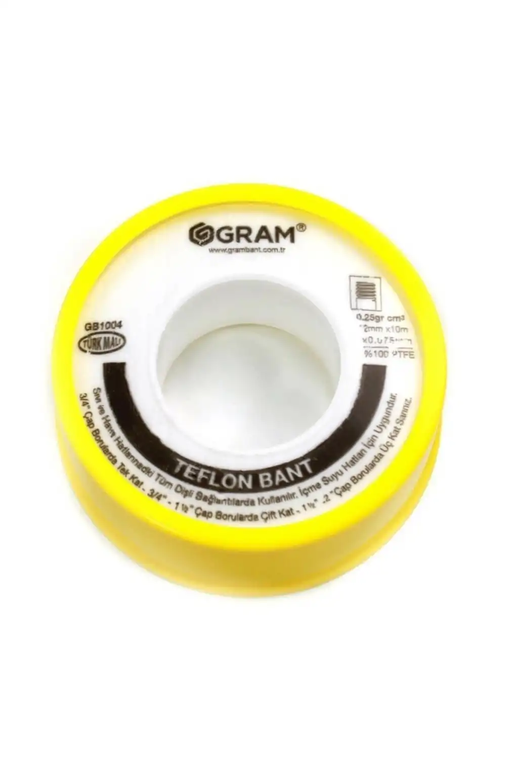 Gram Teflon Bant Sızdırmazlık Bandı 12 mm x 10 mt Özellikleri Model Kodu GB1004 Üretici Firma Gram Ağırlık 0,25 gr/cm³ Materyal %100 PTFE Teflon Uzunluk 10 Metre Genişlik 12 Mm Ürün 10 Adettir. Gram Teflon Bant Sızdırmazlık Bandı 12 mm x 10 mt Kullanım Alanları Sıvı ve hava hatlarındaki tüm dişli bağlantılarda kullanılır. İçme suyu için uygundur. Gram Teflon Bant Sızdırmazlık Bandı 12 mm x 10 mt Kullanım Şekli 3/4" Çaplarda borular için tek kat sarılmalıdır. 3/4" - 1.1/2" çapları aralığında çift kat sarılmalıdır. 1.1/2" - 2" çapları aralığında 3 kat sarılmalıdır. Gram Teflon Bant Sızdırmazlık Bandı Nedir? Teflon bant sıhhi tesisatlarda boru eklemelerde, tadilatlarda sızdırmazlık için kullanılan bir malzemedir. Teflon bant sayesinde sıhhi tesisatlarda kaçaklar yaşanmaz. Bu modeli hidrofor montajlarında, armatür montajlarında, tesisata takılacak pislik tutucu-manometre gibi dişli bağlantısı olan tüm ekipmanlarda ve makinalarda kullanabilirsiniz. En uygun fiyatlar ve üst kalite teflon bant ürünlerini Kampa.com.tr de bulabilirsiniz.
