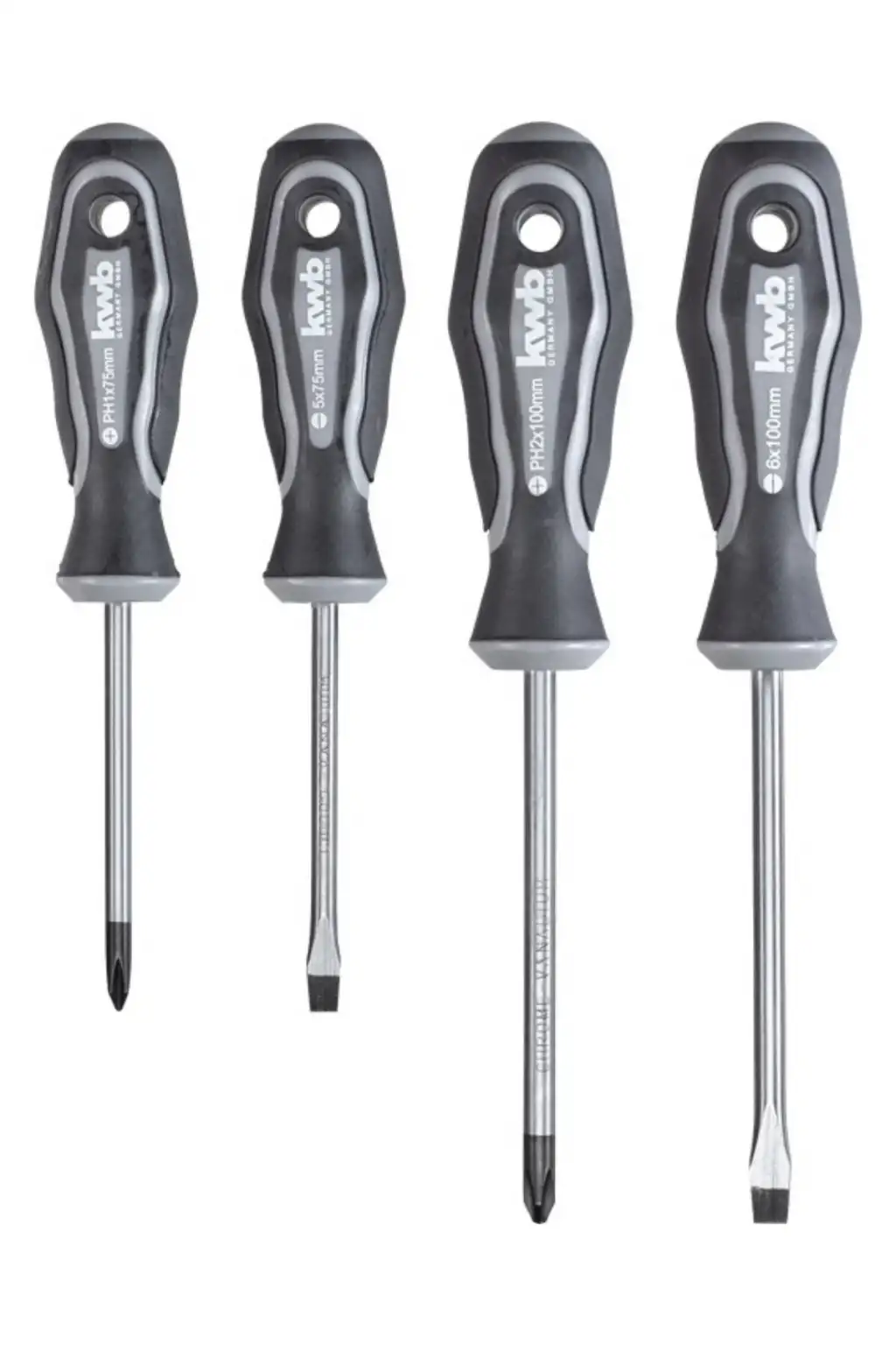Düz tornavida 5 x 75 mm, 6 x 100 mm ; Yıldız tornavida PH1x75 mm, PH 2X100 mm, ; Krom vanadyum çeliğinden imal edilmiş süngü ; yüksek güç aktarımı için ergonomik 2 bileşenli kulplar ve sapta ; Montaj sırasında vidaların tutulabilmesi ve düşmemesi için manyetik uç. ; Uzun ömürlü kullanım için ekstra sertleştirilmiş uçlar. ;