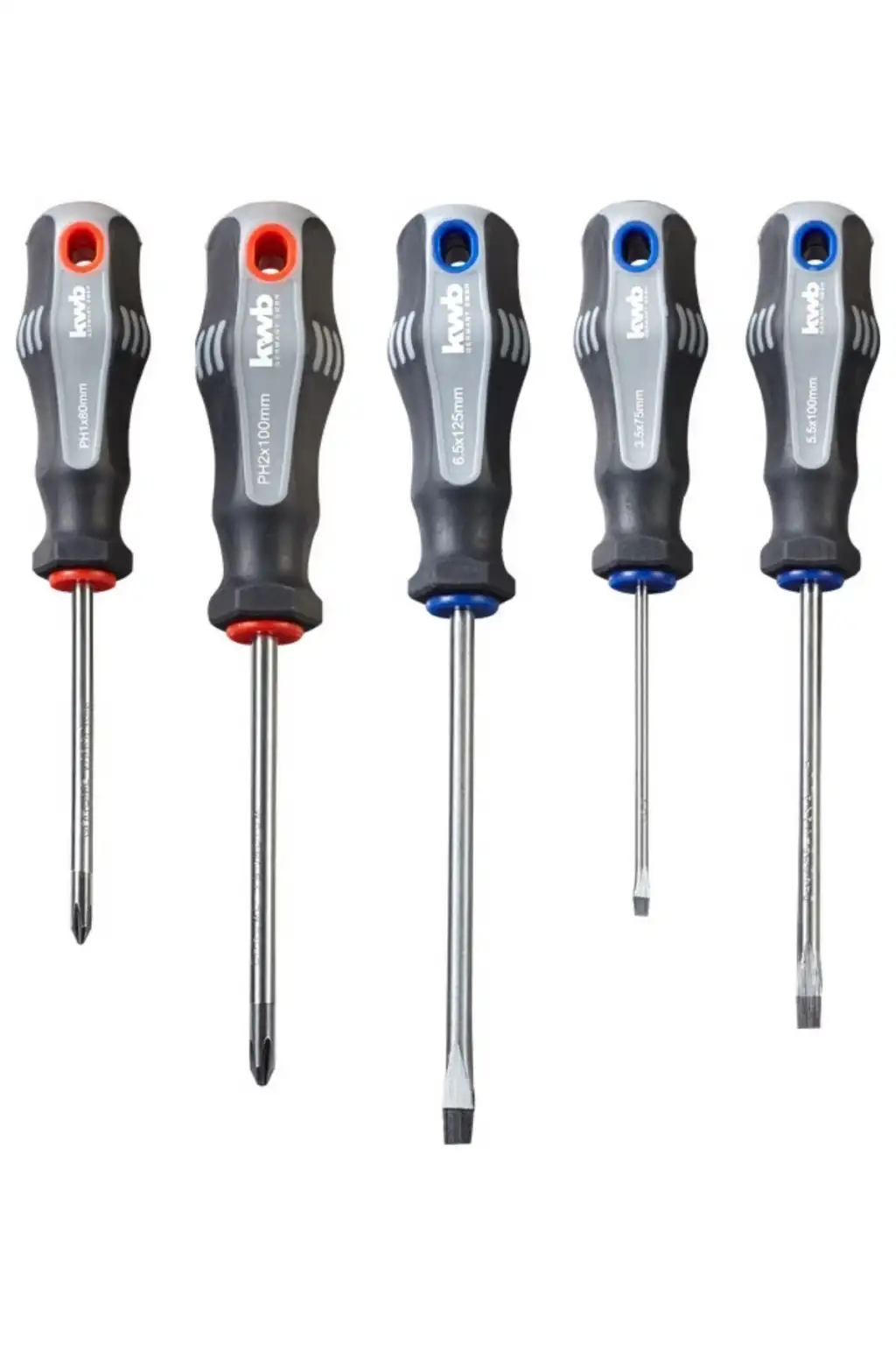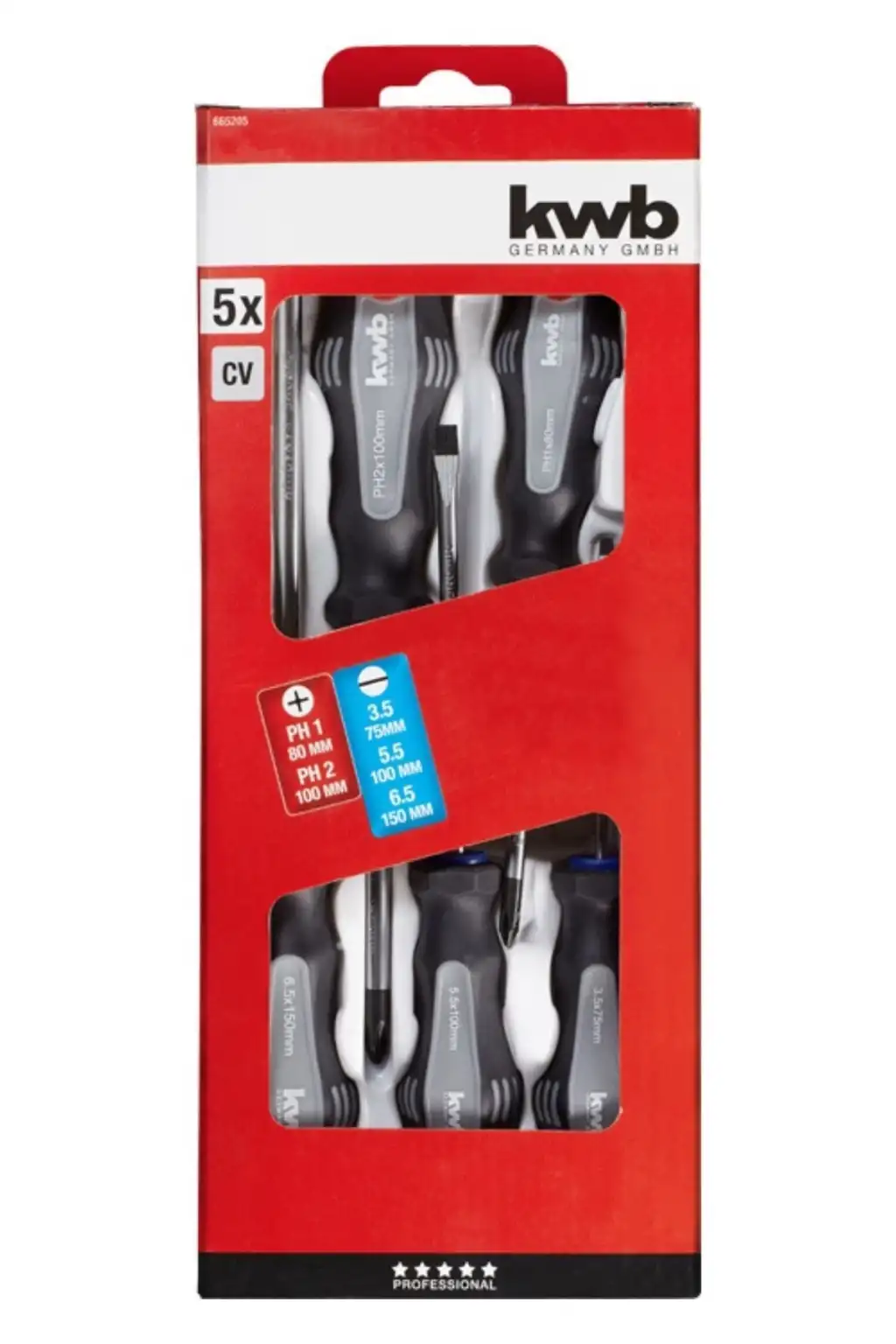 Düz tornavida 3,5 x75 mm, 5.5 x 100 mm, 6.5 x 125 mm ; Yıldız tornavida PH1x80 mm, PH 2X100 mm ; Krom vanadyum çeliğinden imal edilmiştir. ; yüksek güç aktarımı için ergonomik 2 bileşenli kulplar ve sapta ; Montaj sırasında vidaların tutulabilmesi ve düşmemesi için manyetik uç. ; Uzun ömürlü kullanım için ekstra sertleştirilmiş uçlar. ;
