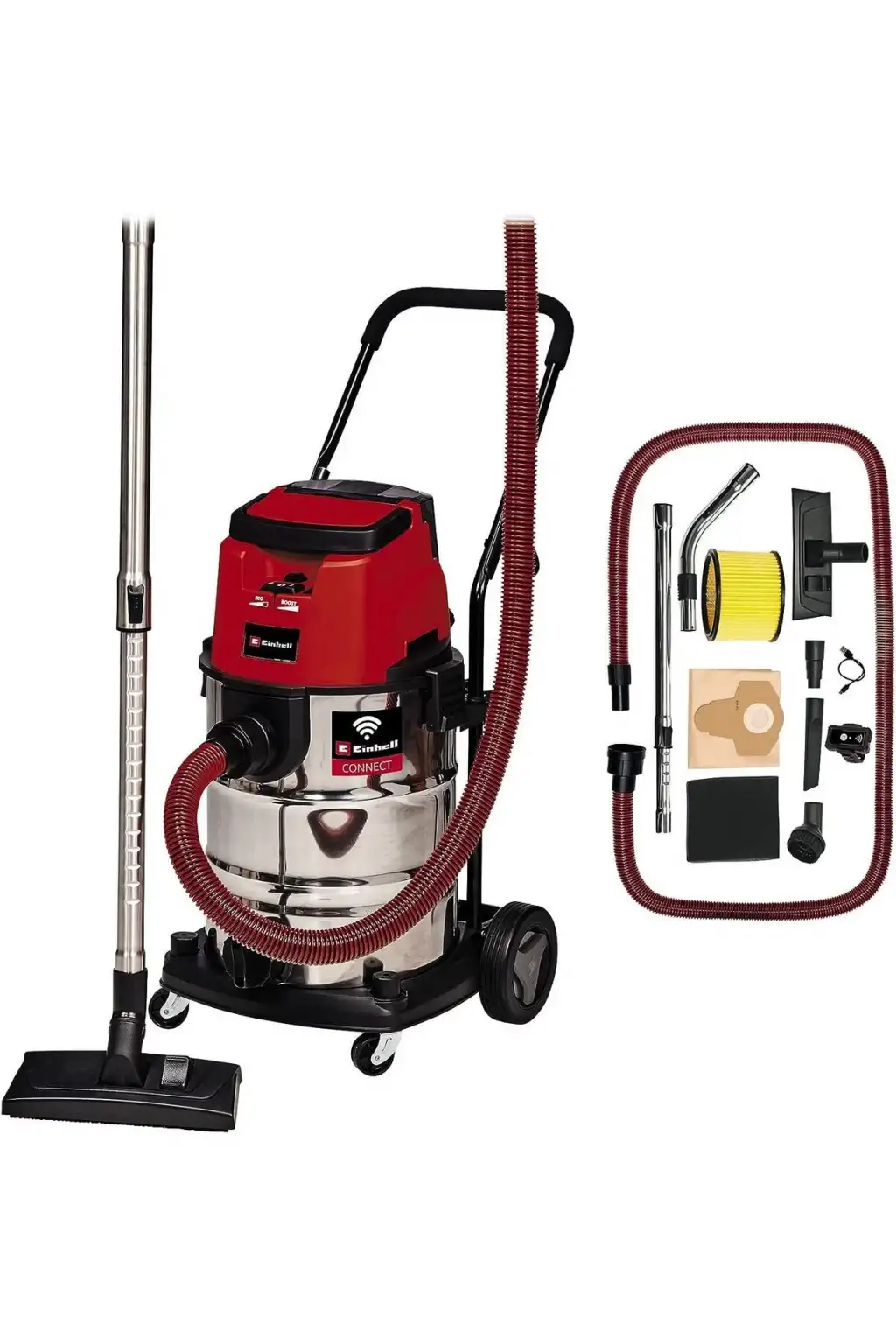Einhell kablosuz ıslak/kuru elektrikli süpürge, saf, esnek pil gücüyle maksimum 150 mbar emiş gücünü memeye dönüştürür. Power X-Change ailesinin bir üyesi olan ıslak/kuru elektrikli süpürge, 2x 18 V PXC pillerle çalışır: Bu, aynı anda kablosuz özgürlükle birlikte yüksek emiş gücü sağlar. İki hız (ECO/BOOST) pillerden en iyi verimi alır. Paslanmaz çelik kap 30 litre kapasitelidir. Kirli su, pratik su tahliye vidası sayesinde kolaylıkla tahliye edilebilir. Üfleme bağlantısı, köşeler veya radyatörlerin arkası gibi ulaşılması zor yerlere üfleme yapmak için kullanılır. Büyük tekerlekler ve tekerlekler hareketlilik ve kolay taşıma sağlar. Islak/kuru elektrikli süpürge atölye ve garajdaki çeşitli Einhell cihazlarına bağlanabilir. Bağlantı fonksiyonu sayesinde toz emme işlemi kablo bağlantısı olmadan gerçekleşir ve akülü alet çalıştırıldığında elektrikli süpürge otomatik olarak çalışır. Pratik bir aksesuar tutucusu, aksesuarların ve tutamağa yakın püskürtme uçlarının altında düzen sağlar. Teslimat, yanlış hava regülatörüne sahip paslanmaz çelik teleskopik boru (Ø 36 mm) ve 2,50 metre uzunluğunda, ağır hizmet tipi plastik emme hortumu (Ø 36 mm) içerir. Teslimata ayrıca geniş bir kombinasyon, bağlantı ve döşeme başlığı, köpük filtre, kıvrımlı filtre, kağıt kir tutucu torbanın yanı sıra bağlantı için verici ünitesi, sabitleme bandı ve şarj kablosu da dahildir. Teslimata pil veya şarj cihazı dahil değildir ancak bunlar ayrı olarak, örneğin pratik Power X-Change başlangıç kiti olarak mevcuttur. En iyi sonuçlar için 3,0 Ah veya üzeri bir pil önerilir.