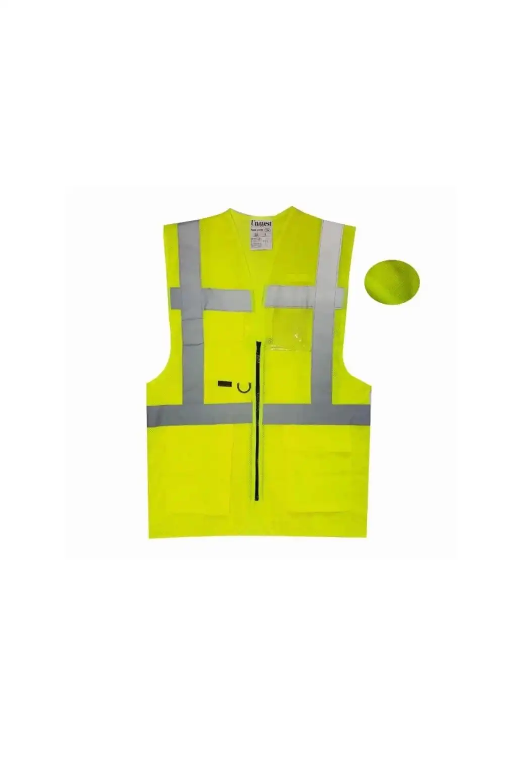 Uniwest® UW 220 Yönetici Yeleği Sarı Fileli Öne Çıkan Özellikleri % 100 Polyester File Çözgü örgü 125 gr m2 Ön fermuar kemik diş kapama Kimlik, mobil ve kalemlik cebi Telsiz askısı yanlarda kapaklı üstten cepler Beden üzerinde reflektif bantlar Sertifika: EN 20471 : 2013 Class 2