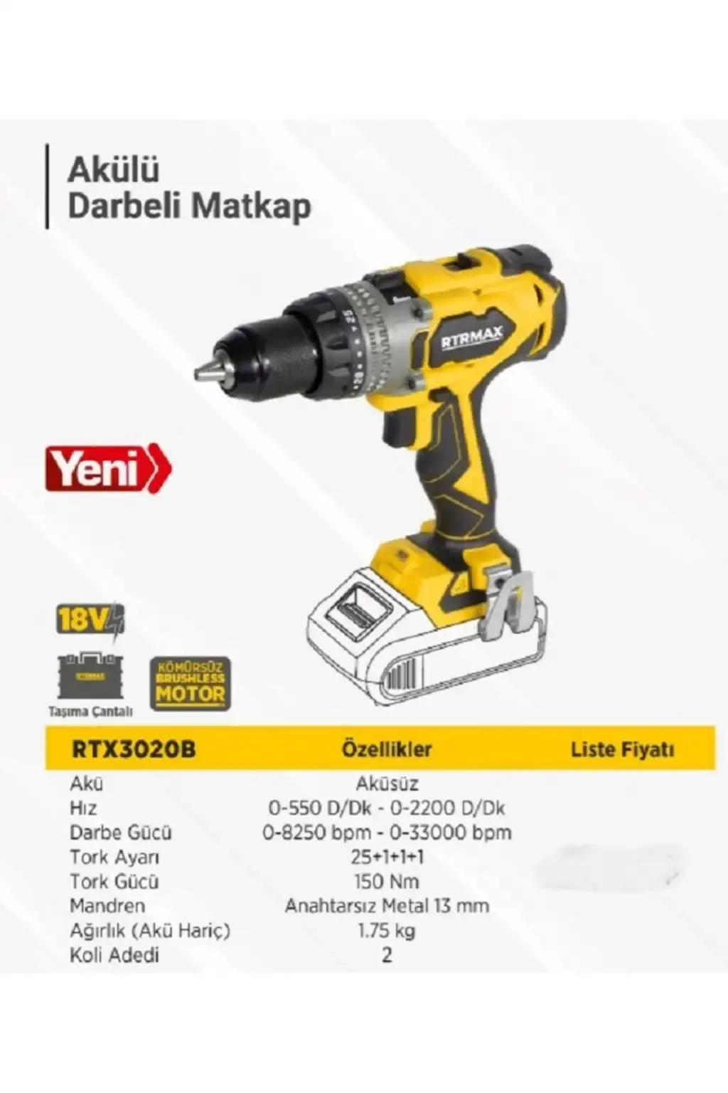 Rtrmax X-LION RTX3020B Akülü Darbeli Matkap Kömürsüz 150Nm - Akü ve şarj hariç