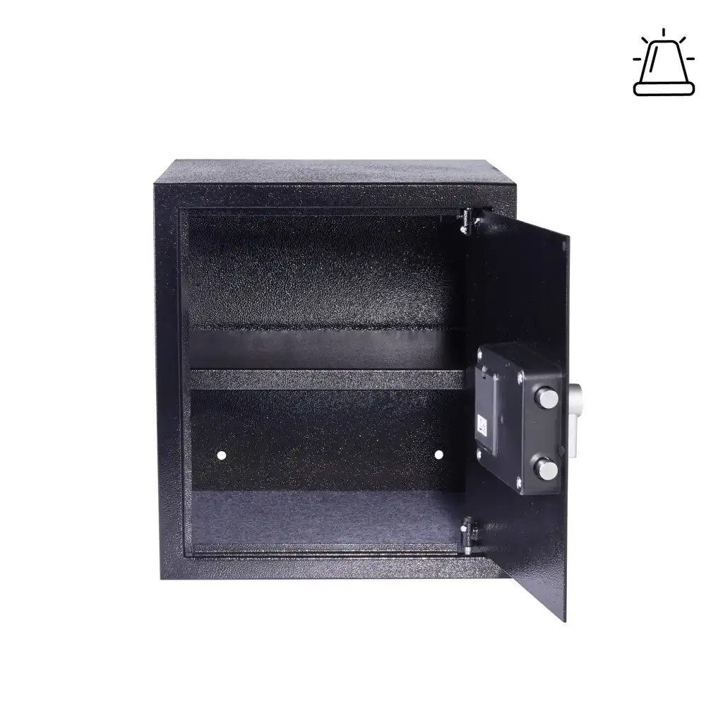 Entegre 130dB sesli ikaz alarmı kasanız kurcalandığında veya şifre 3 kez yanlış girildiğinde devreye girer.