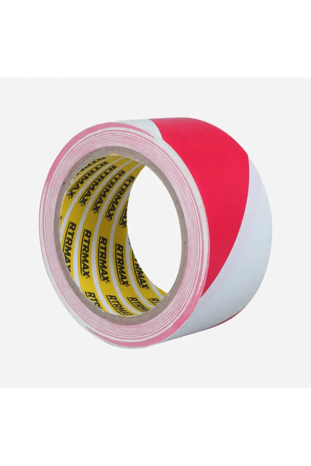 Yer İşaretleme Bandı Kırmızı - Beyaz 50 mm x 25 yds, Maksimum Yapışkanlık